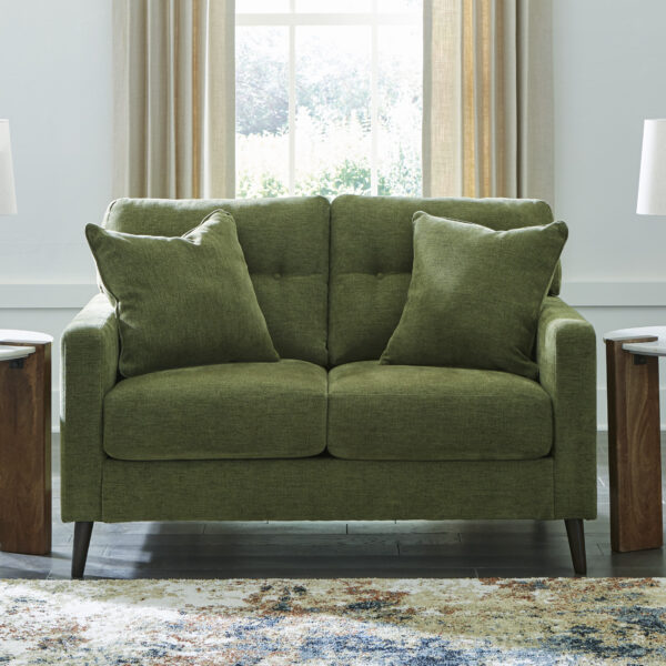 Retro puudutusega Ashley Bixler kahekohaline diivan, mõõtudega 1447.8mm W x 965.2mm D x 939.8mm H.