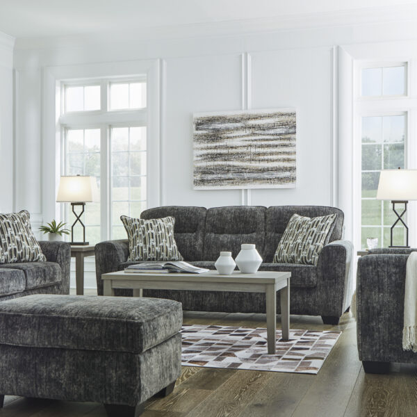 Pilkupüüdva disainiga Ashley Lonoke kahekohaline diivan, mõõtudega: 1701.8mm W x 965.2mm D x 1016mm H.