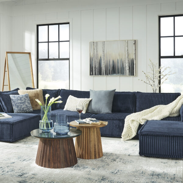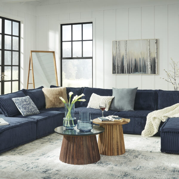 Kaasaegse disainiga Ashley Bales kolmekohaline mooduldiivan, mõõtudega: 2971.8mm W x 445.01mm D x 711.2mm H.