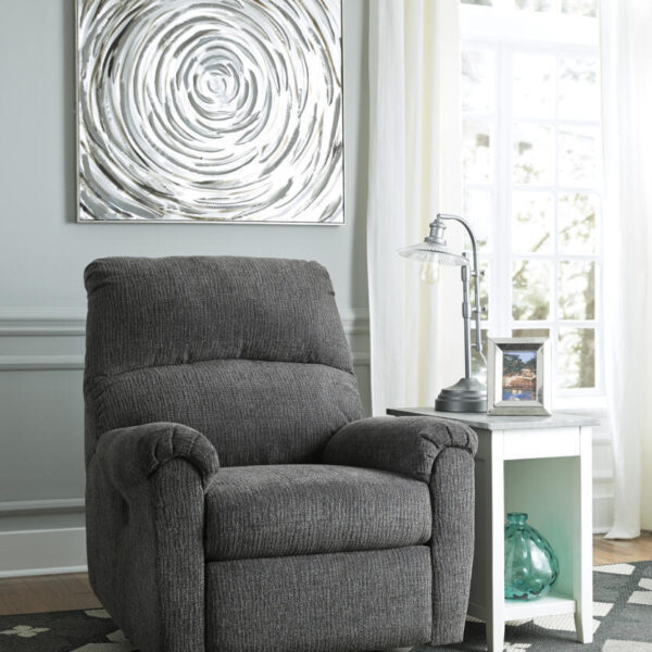 Ameerikaliku stiiliga Ashley Bladewood recliner tugitool, mõõtudega 838.2mm W x 1016mm D x 1016mm H. Tugitool on saadaval kahes toonis coffee ja slate (hall).