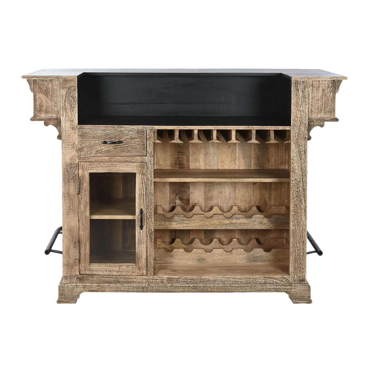 Baarilett Barra on suurepärane näide mööbliesemest, mis vastab nii disaini kui ka funktsionaalsuse nõudmistele. Baarilett Barra on valmistatud kvaliteetsest mangopuidust, millel on naturaalne viimistlus, ühendades nii vastupidavuse kui ka ajatu elegantsi. Mangopuidust valmistatud mööbel on tuntud oma vastupidavuse ja unikaalse tekstuuri poolest, mis lisab igale tootele iseloomu. Uksega kapp pakub piisavalt ruumi erinevate esemete, näiteks joogipudelite või serveerimisnõude, hoiustamiseks. Sahtel annab võimaluse väiksemate tarvikute, nagu korgitserid ja pudeliavajad, organiseeritult paigutamiseks.