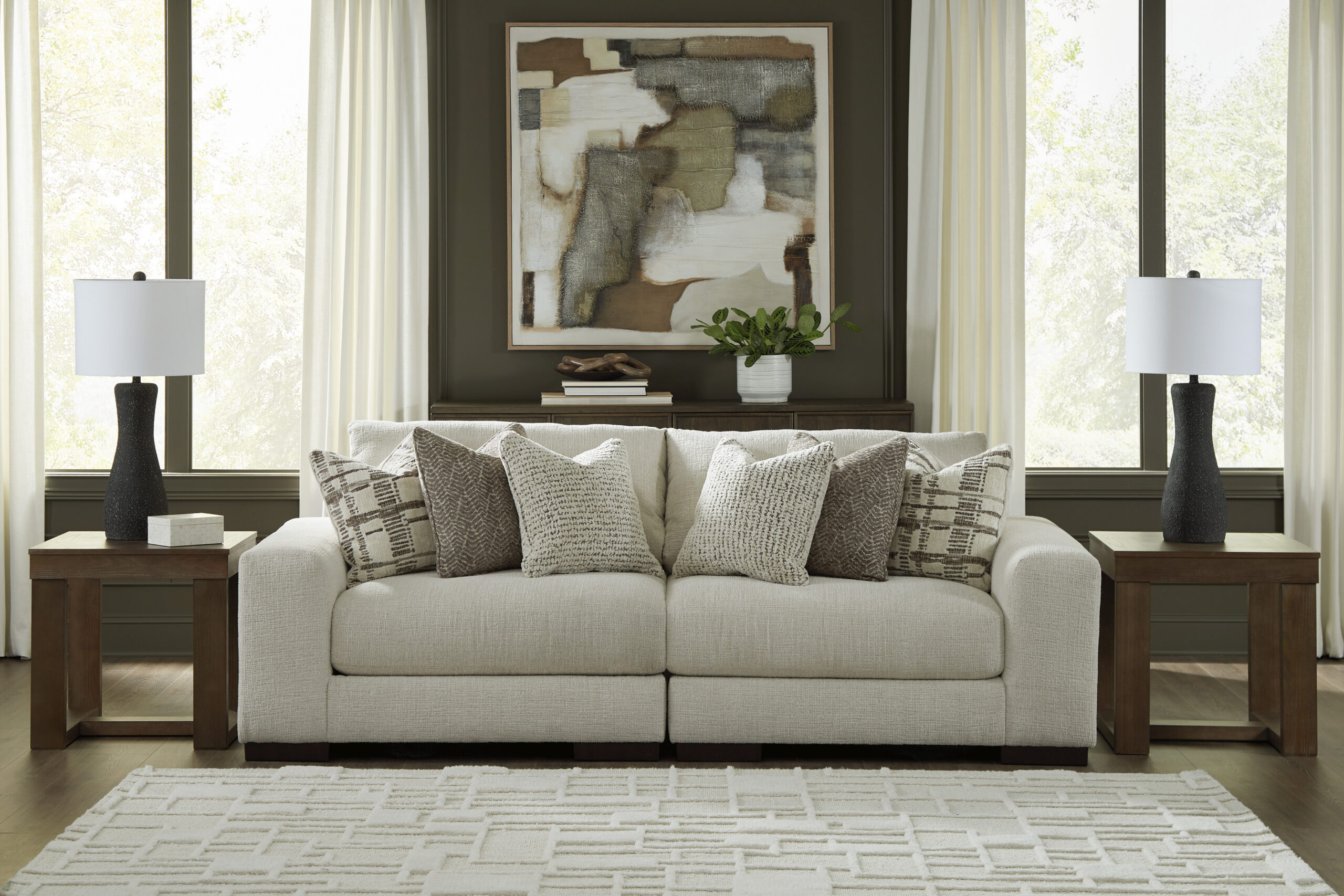 Diivan on täispuidust ja vineerist karkassiga. Diivani istumispadjad on täidetud kvaliteetse porolooniga. Kasutatakse uudset platvormi vedrustust tavalise zik-zak kujuliste vedrude asemel: koormus kulumisele on väiksem, pikem eluiga, kompaktsem välja nägemine. Tagakülg on viimistletud ja võimalik paigutada keset ruumi. Toote raam ja kangas vastavad Ameerika Kodusistustaja Liidu GSA ja AHMA standarditele. Rohkem tooteid Ashley kodulehelt.