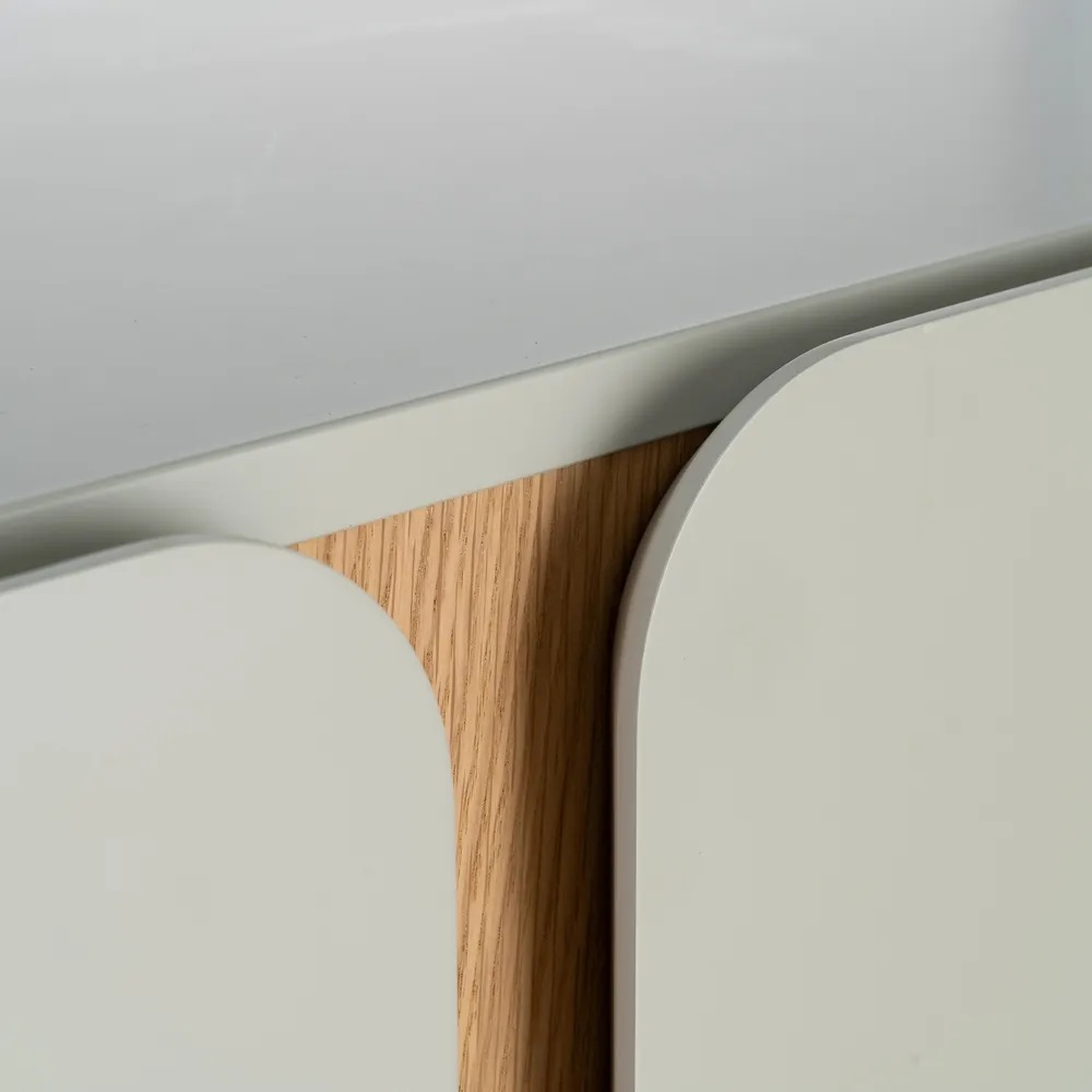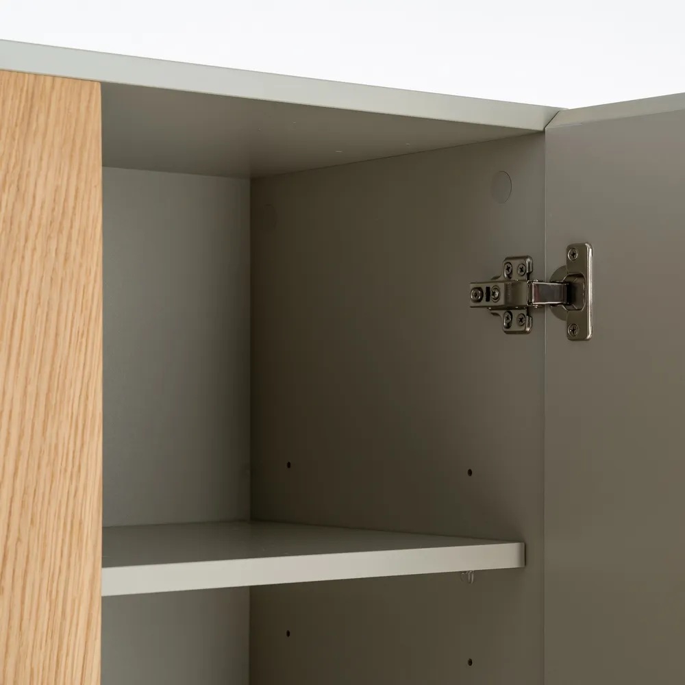 Kapp on viimistletud beeži tooniga, mis loob rahuliku ja hubase atmosfääri igas ruumis. Beež on universaalne värv, mis sobib suurepäraselt erinevate sisustustrendidega. Disainis on lisatud elegantsed puidutooni vaheliistud, mis pakuvad visuaalset atraktiivsust ja toovad esile puidu ilu. Minimalistlik lähenemine disainile tagab, et kapp ei domineeri ruumis, vaid täiendab seda harmooniliselt.