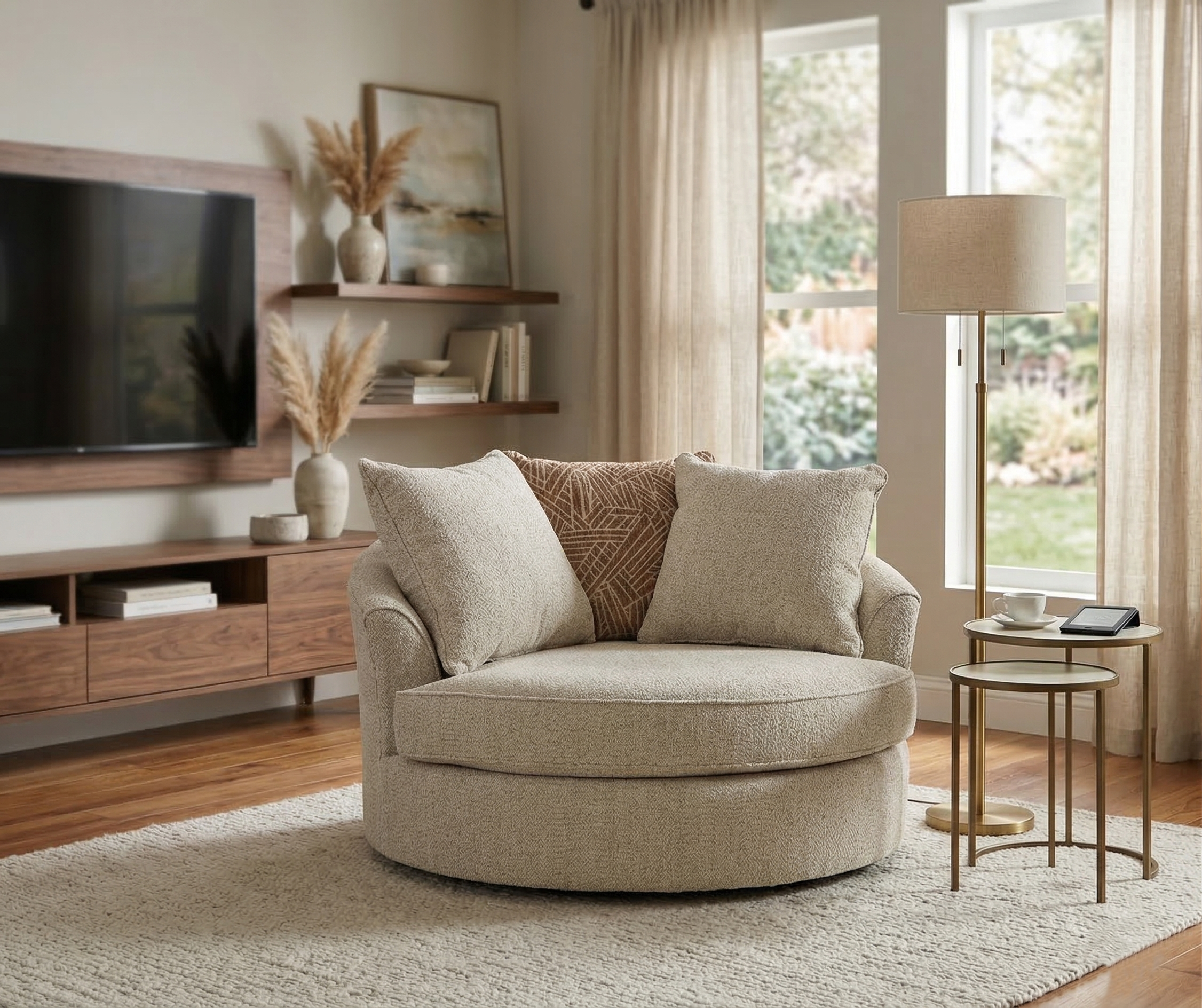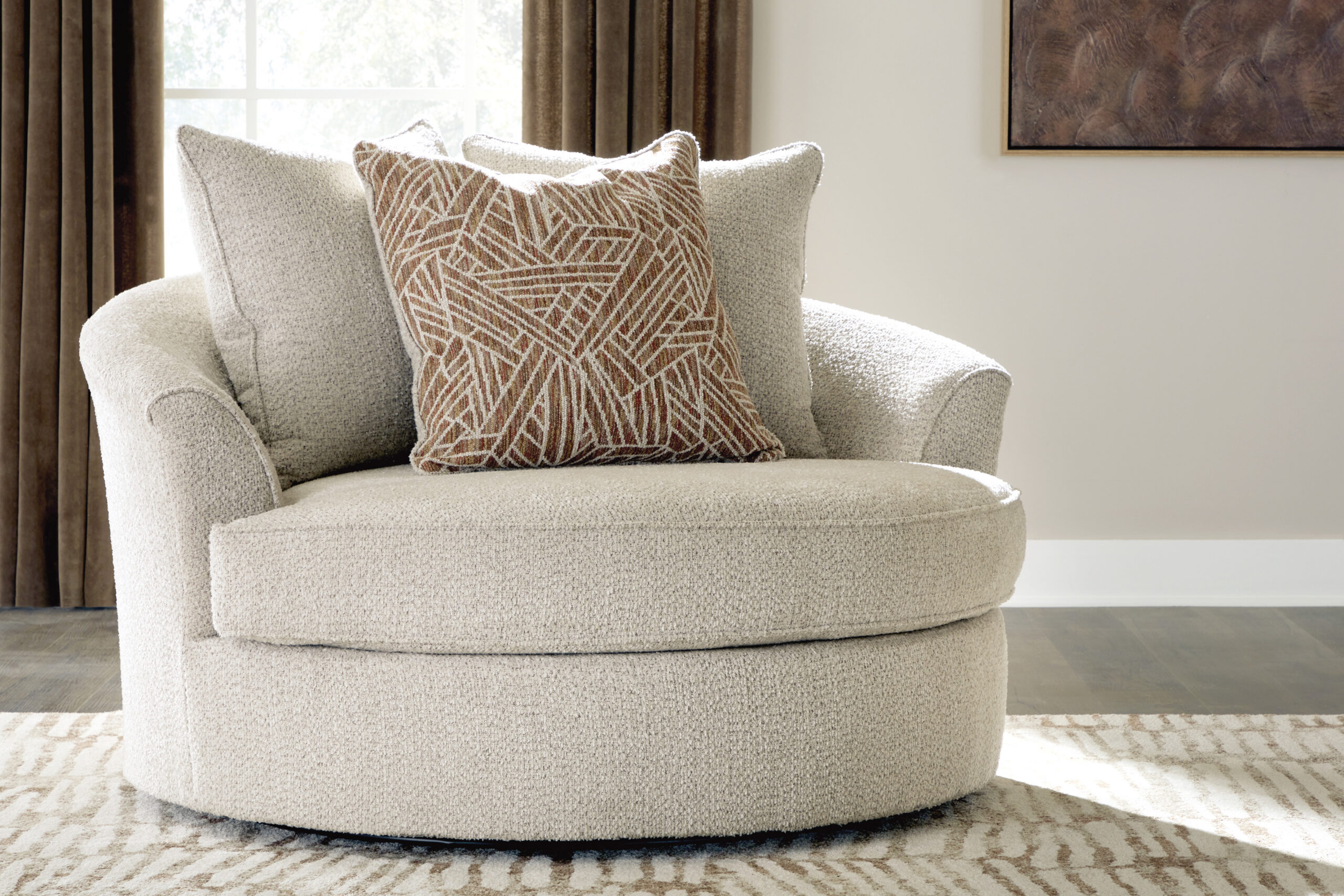 Keerlev tugitool Steelwater Retreat on lihtsa ja kaasaegse disainiga, mis on ideaalne valik igasse kaasaegsesse kodusse. Rohkelt polsterdatud iste ja beezi tooni ülipehme šenillkangas kutsuvad teid aja maha võtma ja lõõgastuma.