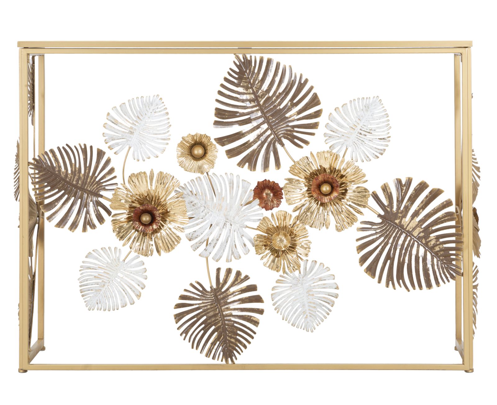 Konsoollaud Flowers Gold toob teie koju stiilsuse ja elegantsi. Konstruktsioon on kaunistatud lehtede ja lilledemotiividega igast küljest, mis muudab laua selle mitte ainult silmapaistvaks, vaid ka äärmiselt funktsionaalseks mööbliesemeks. Olgu see siis esikus, elutoas või magamistoas, konsoollaud lisab igasse ruumi sära ja stiili.