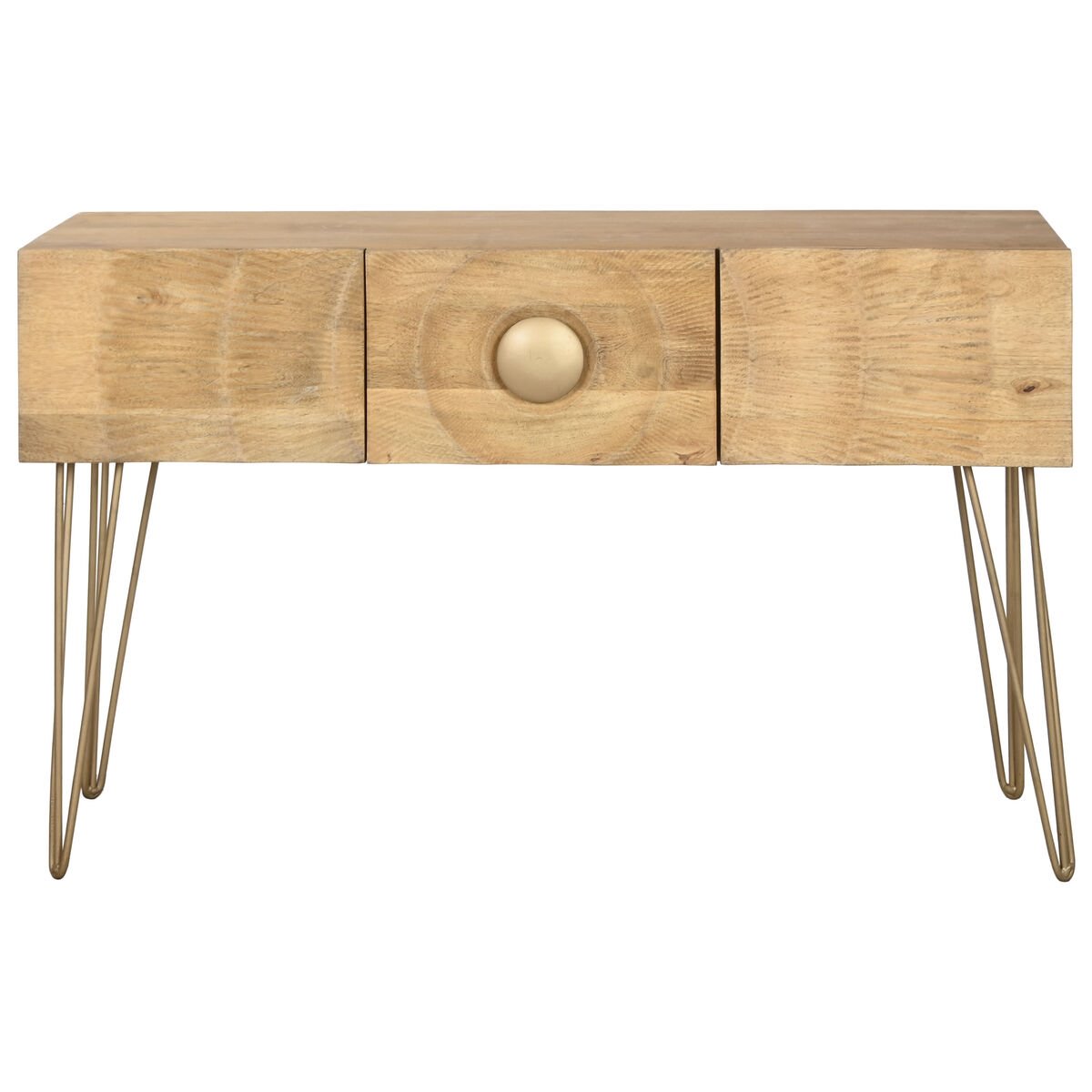 Pilkupüüdva disainiga konsoollaud Mandala Nature on valmistatud kvaliteetsest mangopuidust. Mangopuit on tuntud oma vastupidavuse ja pikaealisuse poolest, tagades, et toode kestab aastaid. Konsoollaual on kolm sahtlit, pakkudes piisavalt ruumi väiksemate esemete organiseeritud hoiustamiseks.