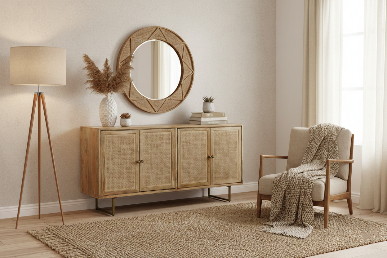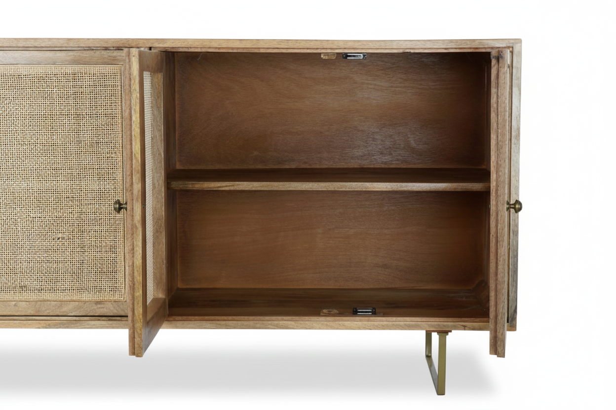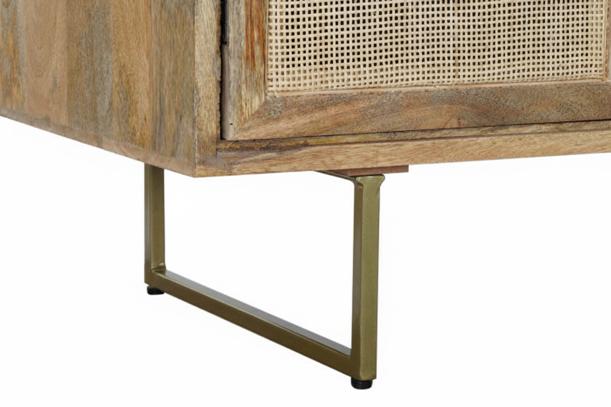 Mangopuidust ning rotangist elementidega kaunistatud kummut kiirgab modernset elegantsi, säilitades samas puidu soojust ja tekstuuri. See kombinatsioon loob harmoonilise tasakaalu, mis toob ruumi nii ilu kui ka funktsionaalsust. Kummuti viimistlus lisab stiilsust ja atraktiivsust, muutes selle tõeliselt silmapaistvaks osaks igas ruumis.