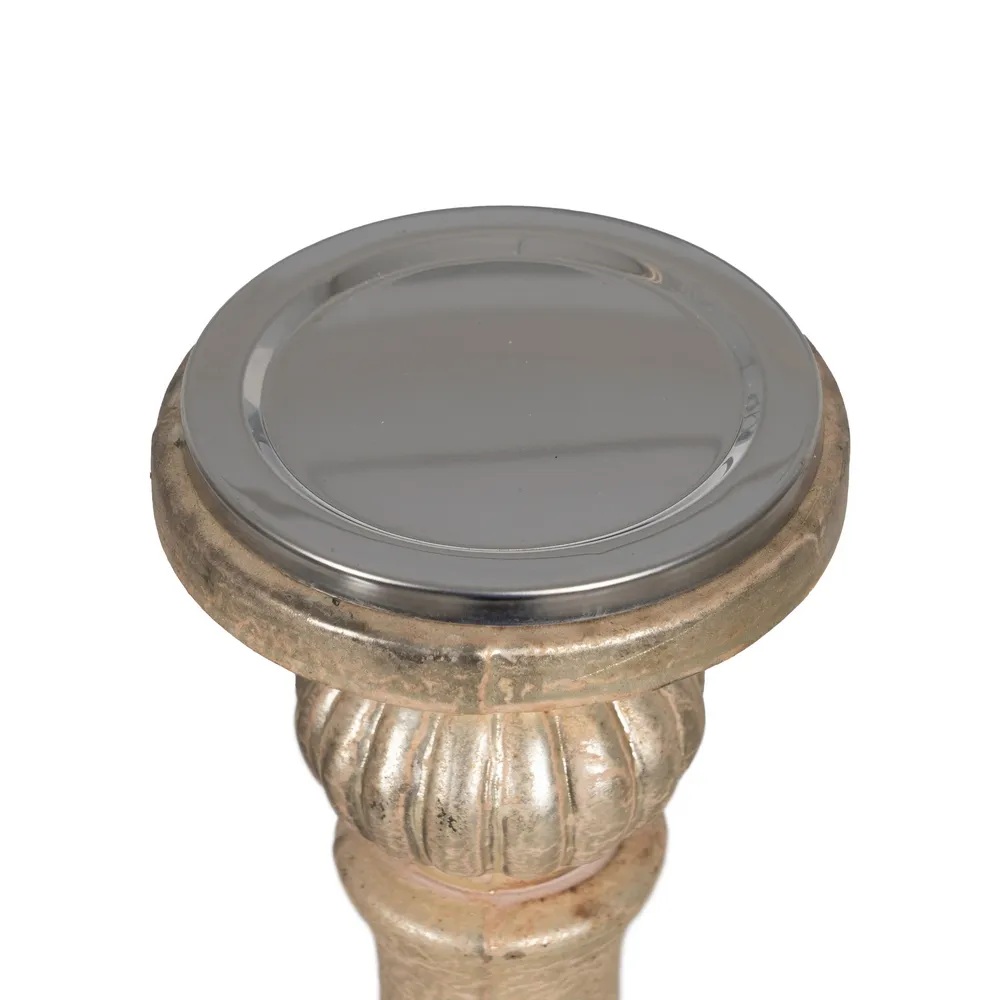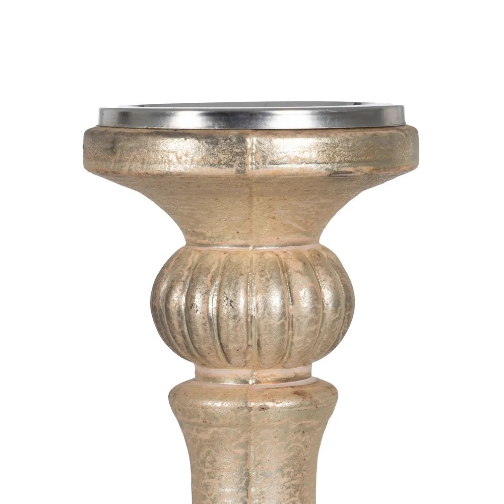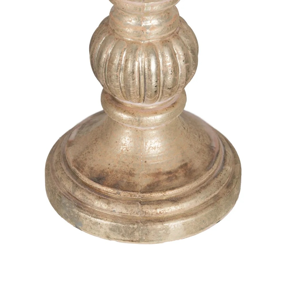 Küünlajalg Rust on atraktiivne ja praktiline aksessuaar, mis on mõeldud kasutamiseks ühele küünlale, pakkudes elegantset ja hubast atmosfääri igas ruumis. Klaasist valmistatud küünlajalg paistab silma detailiderikka disaini ja vanutatud kuldset tooni viimistlusega, mis annab sellele unikaalse ja ajatu ilme.