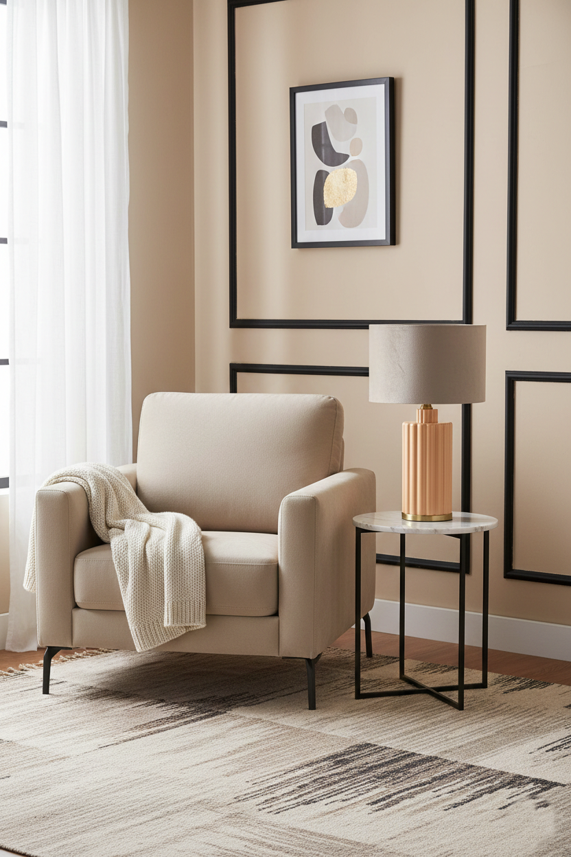 Lambivari on valmistatud beezi tooni kangast, mis lisab soojust ja hubasust, luues õdusa ja meeldiva valgustuse igas toas.