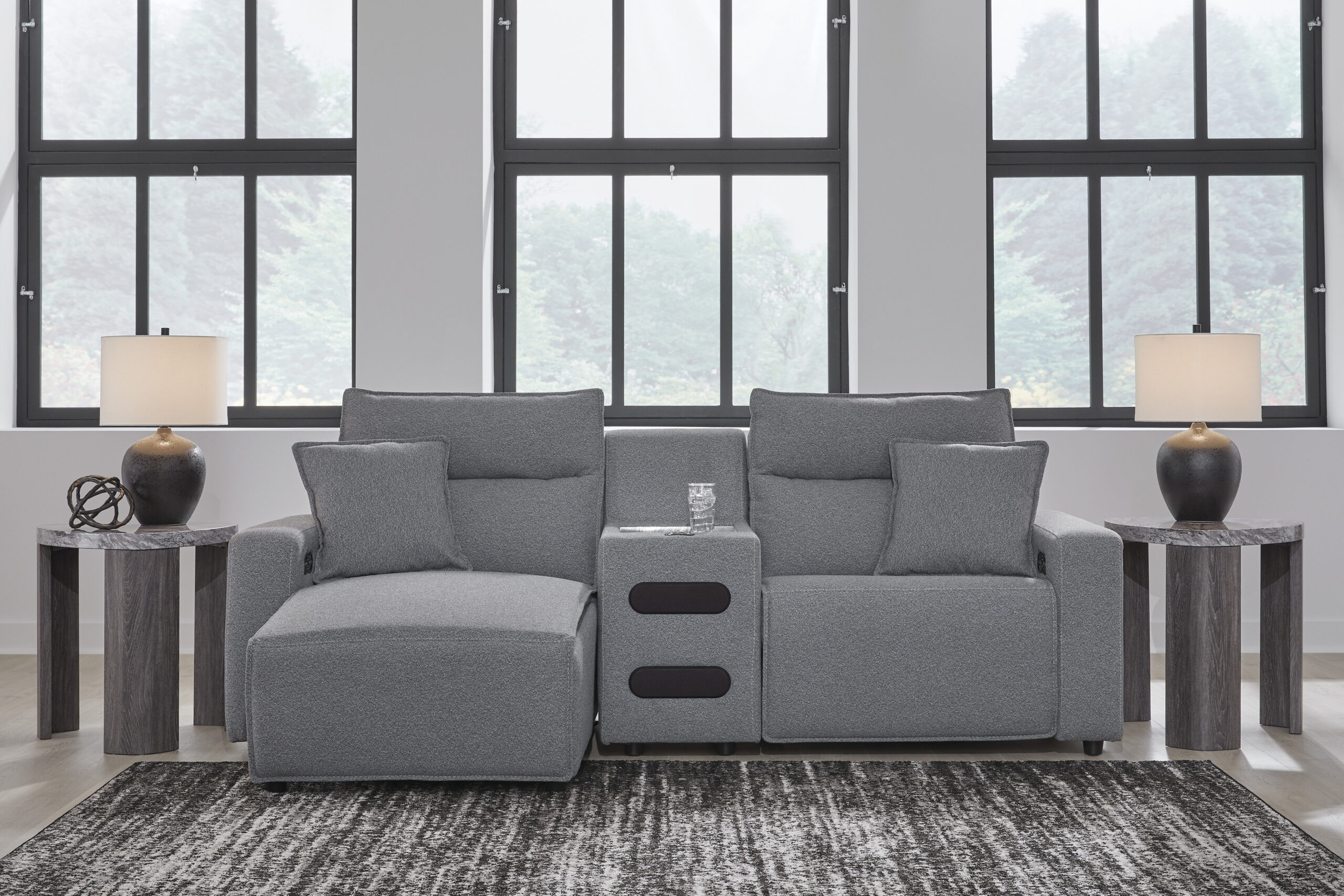 Recliner nurgadiivan 3M on täispuidust ja vineerist ning metallist karkassiga. Diivani istumispadjad on täidetud kvaliteetse porolooniga. Tagakülg on viimistletud ja võimalik paigutada keset ruumi. Toote raam ja kangas vastavad Ameerika Kodusistustaja Liidu GSA ja AHMA standarditele. Rohkem tooteid Ashley kodulehelt.