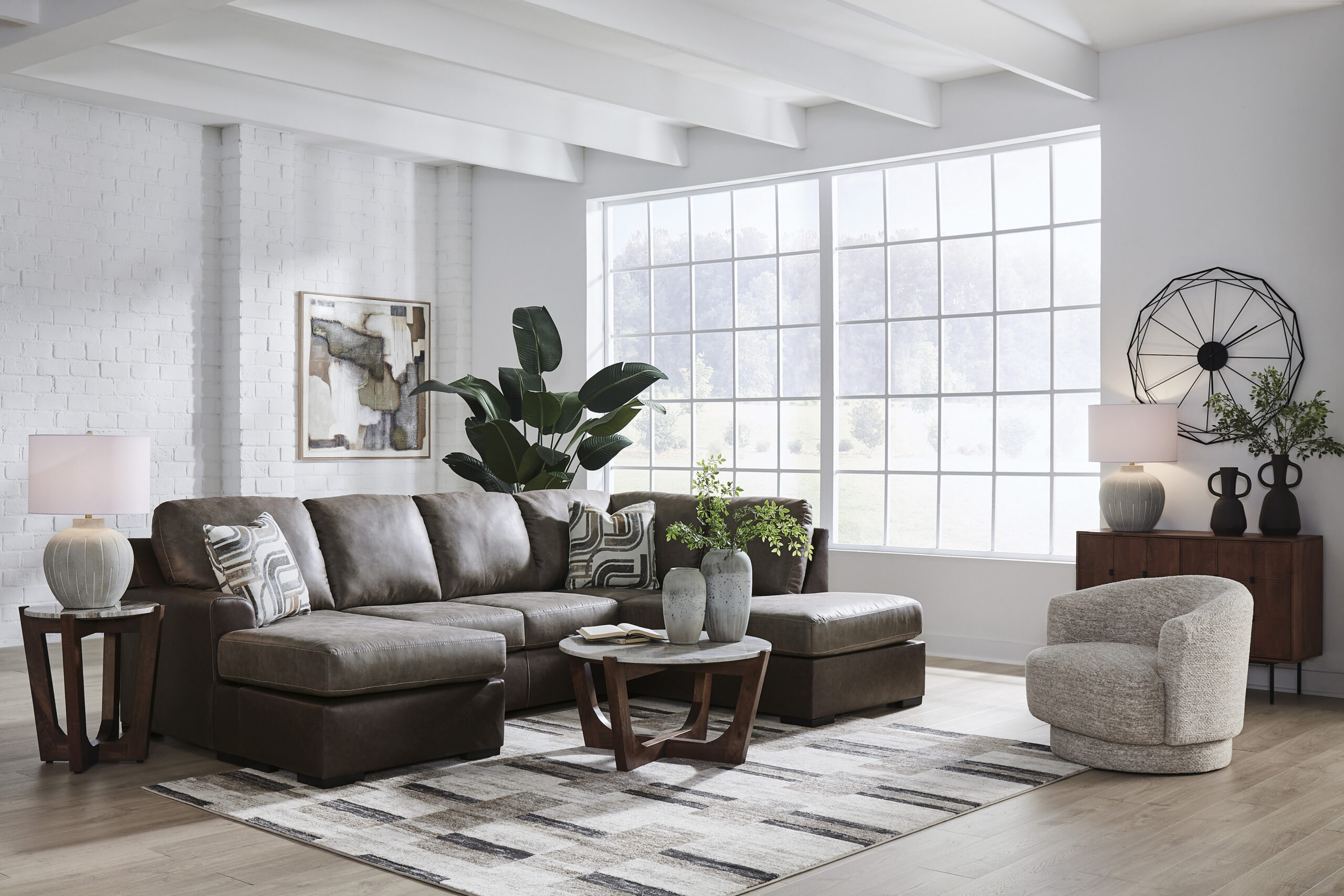 Diivan on täispuidust ja vineerist karkassiga. Diivani istumispadjad on täidetud kvaliteetse porolooniga. Kasutatakse uudset platvormi vedrustust tavalise zik-zak kujuliste vedrude asemel: koormus kulumisele on väiksem, pikem eluiga, kompaktsem välja nägemine. Tagakülg on viimistletud ja võimalik paigutada keset ruumi. Toote raam ja kangas vastavad Ameerika Kodusistustaja Liidu GSA ja AHMA standarditele. Rohkem tooteid Ashley kodulehelt.