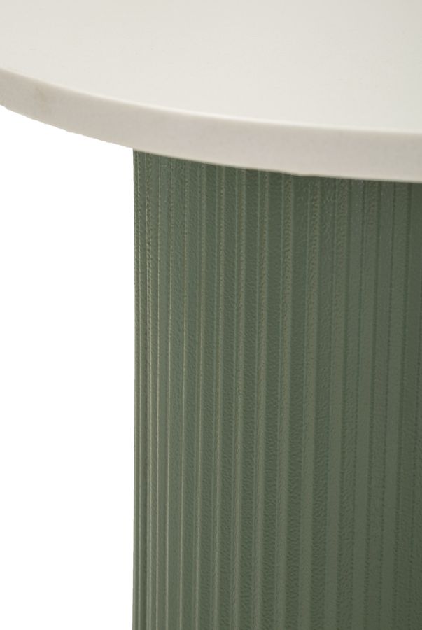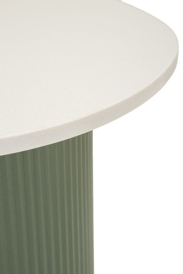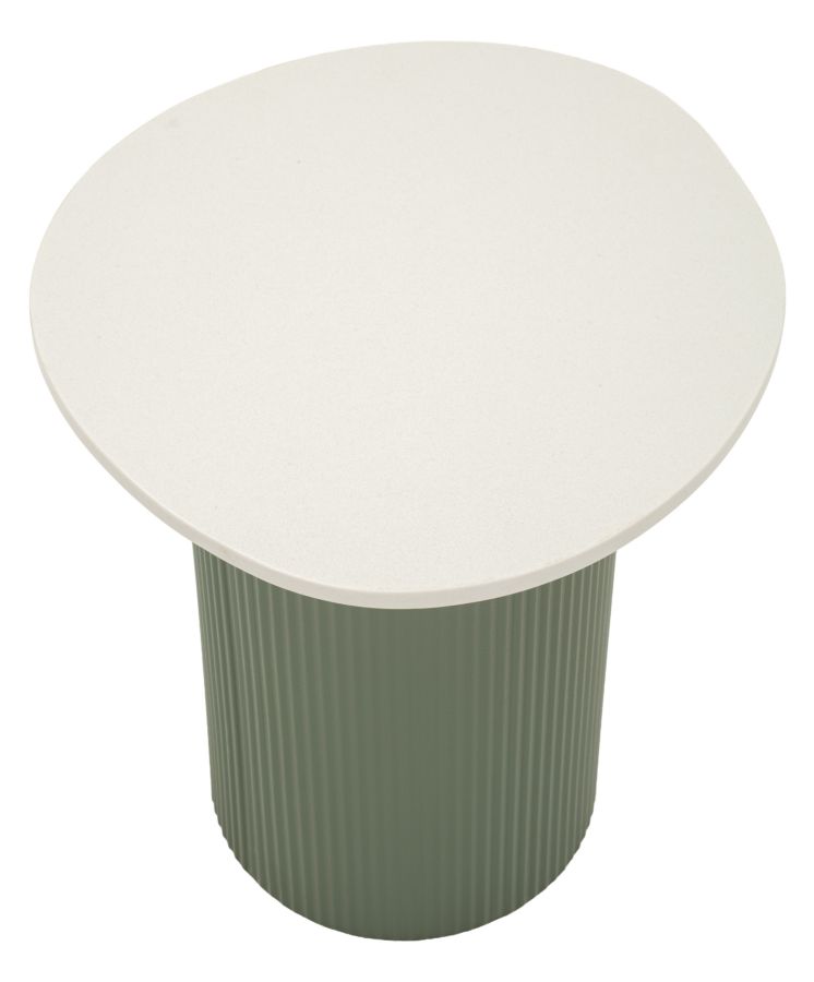 Nurgalaua alus on valmistatud kvaliteetsest metallist ning pealisplaat marmorimitatsiooniga mdf-ist, mis tagab vastupidavuse ja pikaealisuse. Lauaplaadi valge toon toob ruumi värskust, samas kui rohelist tooni alus lisab aktsenti.