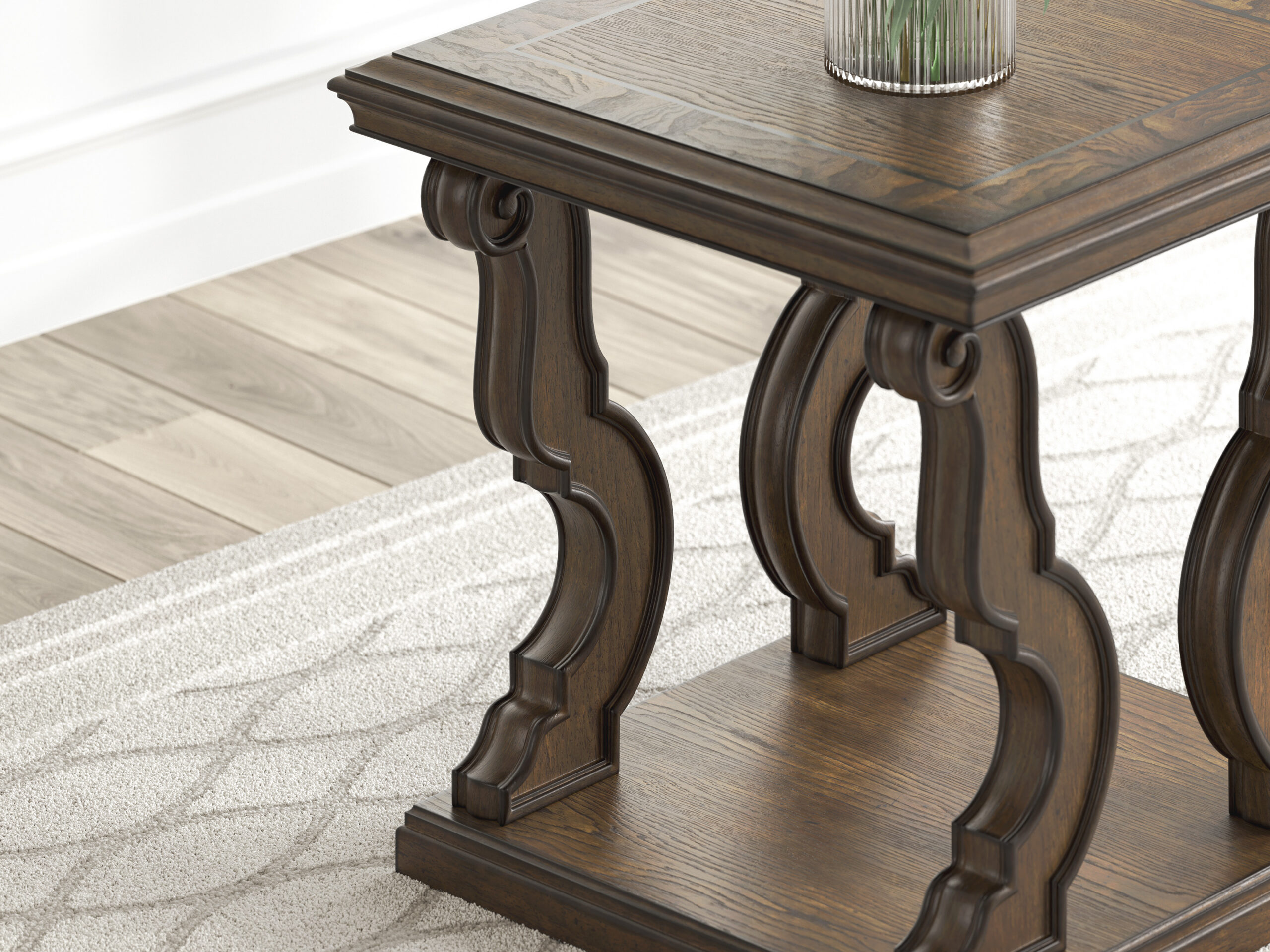 Nurgalaua erilisuseks on kaunid nikerdused, mis lisavad sellele iseloomu ning sügavust. Need detailid rõhutavad käsitöö kunsti ja annavad lauale unikaalse ilme, mis püüab pilke.
