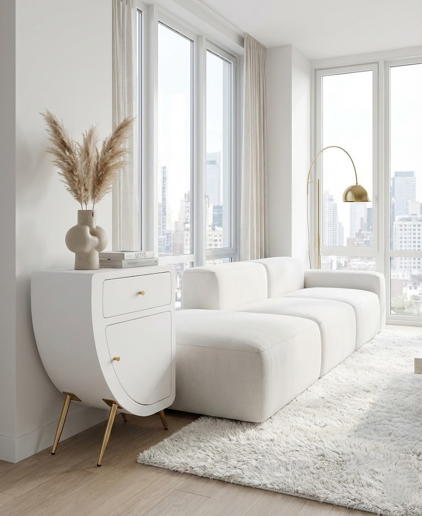 Nurgalaua valge viimistlus loob värske ja stiilse õhkkonna. Valge toon on äärmiselt mitmekülne, sobides hästi nii kaasaegsetesse kui ka klassikalistesse interjööridesse, tuues esile ruumi erilise ilme.