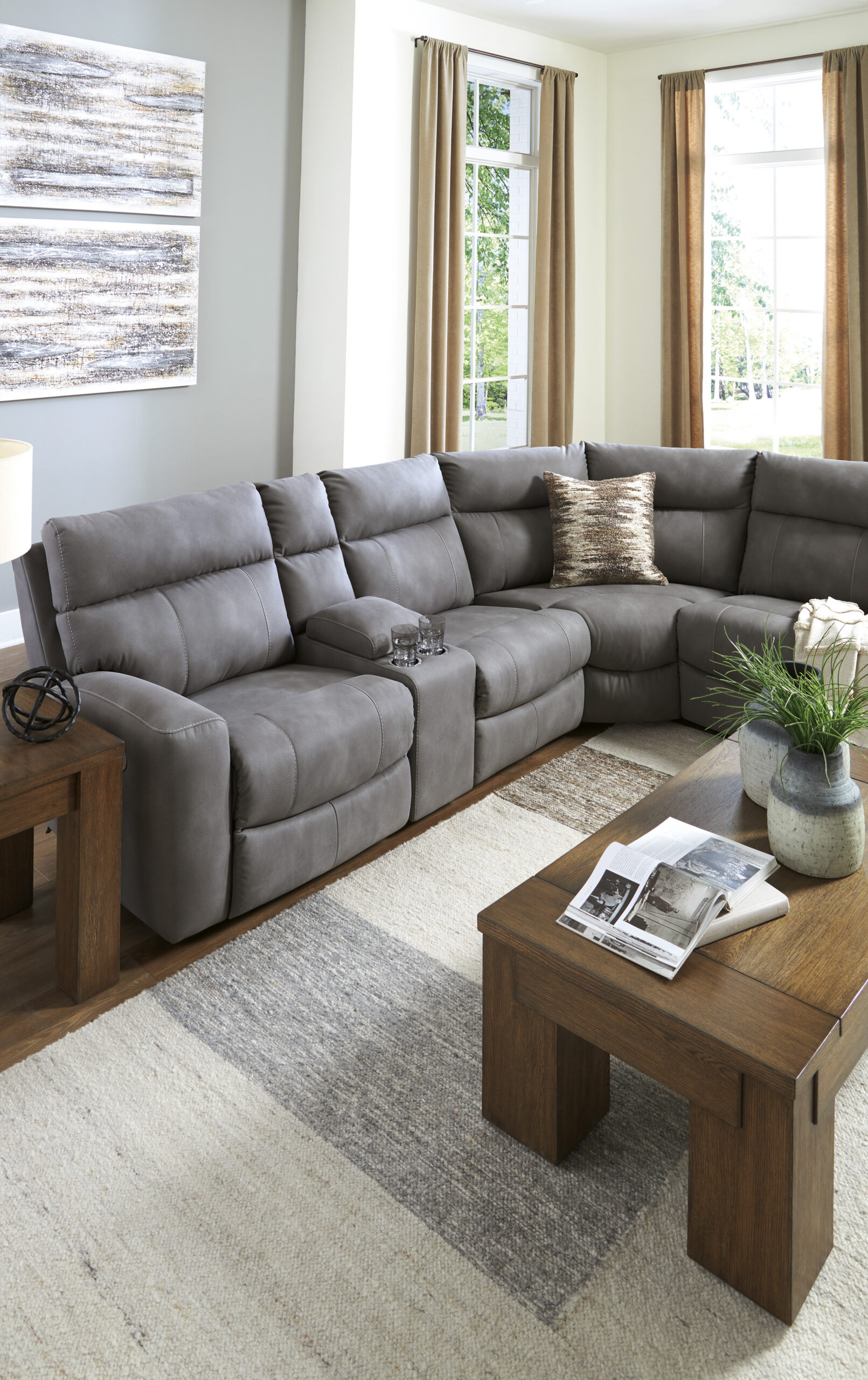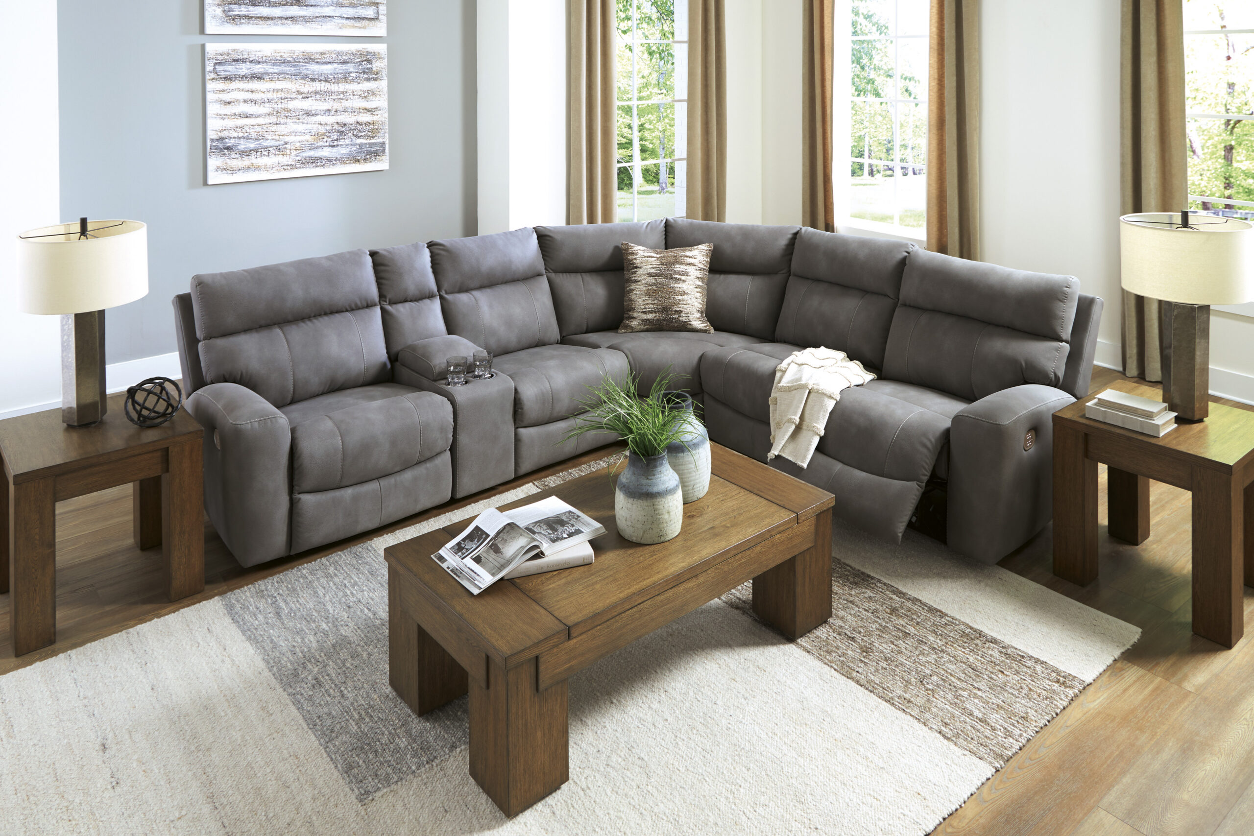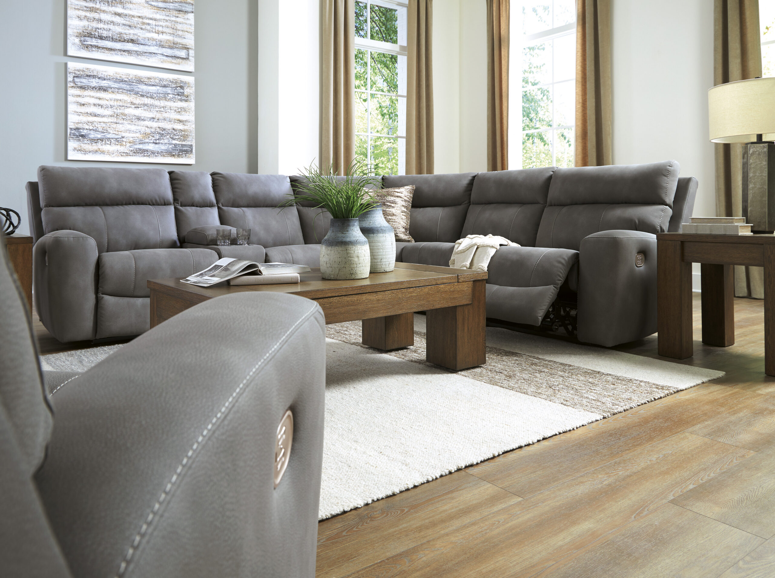 - Koosneb 6 moodulist: vasaku käetoega elektrilisest tugitooli moodulist, kahest käetugedeta toolist, konsooliga moodulist, nurgamoodulist ja parema käetoega elektrilisest tugitooli moodulist. “Vasak käsi” ja “parem käsi” kirjeldavad asendit, kui olete diivani poole näoga.