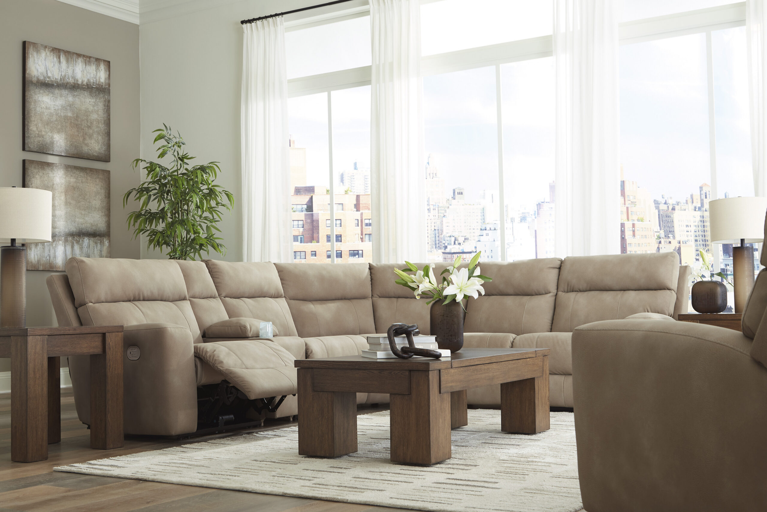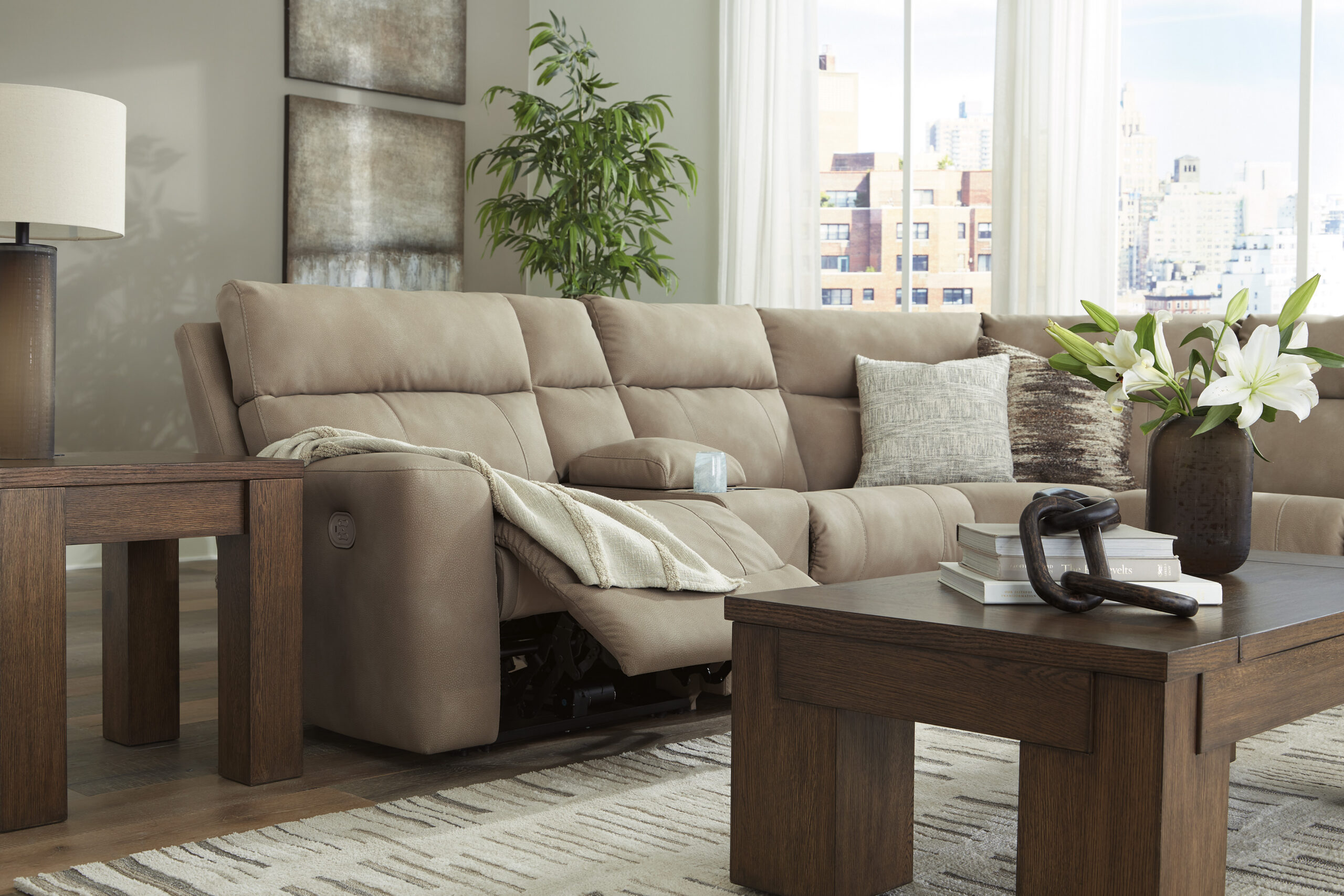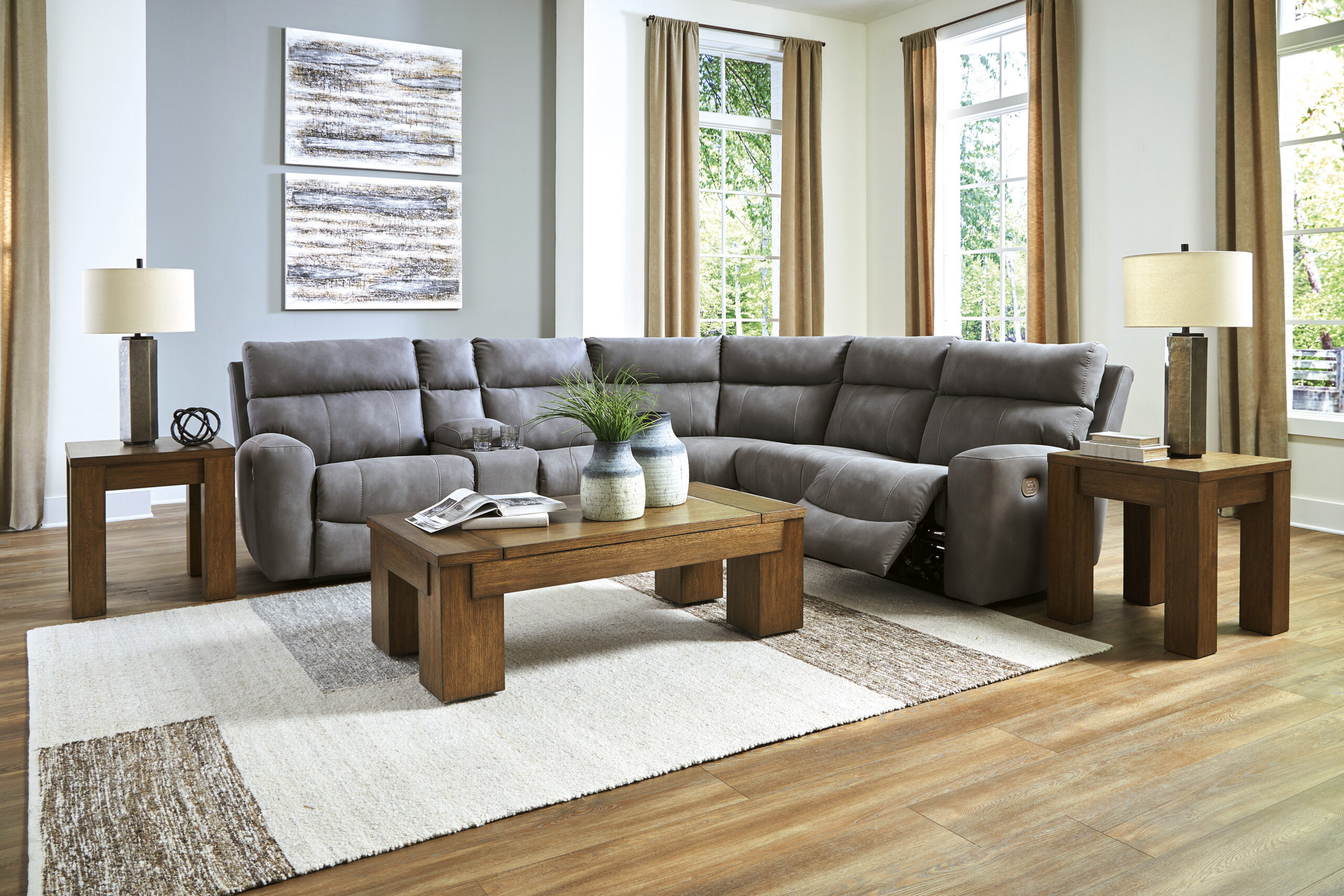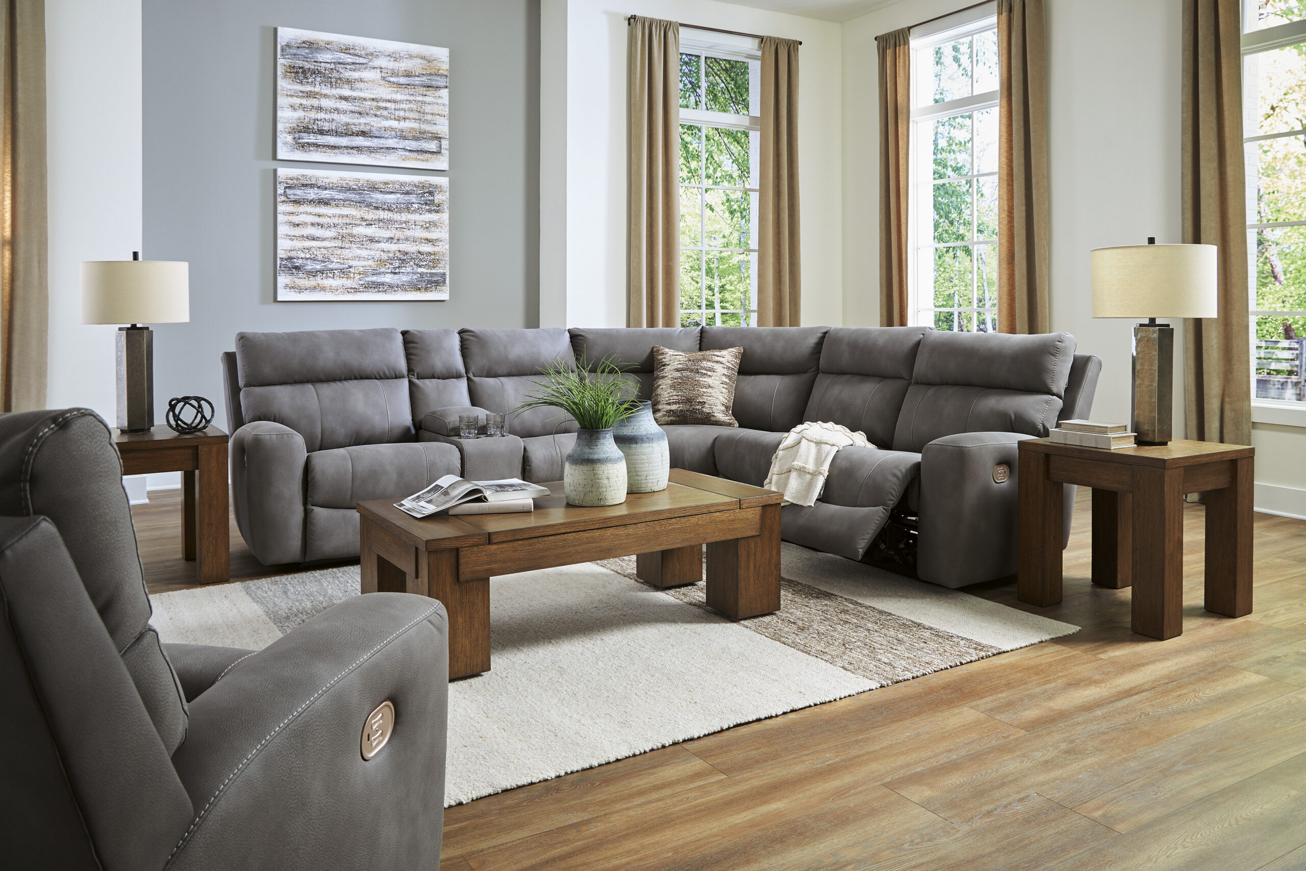 - Koosneb 6 moodulist: vasaku käetoega elektrilisest tugitooli moodulist, kahest käetugedeta toolist, konsooliga moodulist, nurgamoodulist ja parema käetoega elektrilisest tugitooli moodulist. “Vasak käsi” ja “parem käsi” kirjeldavad asendit, kui olete diivani poole näoga.