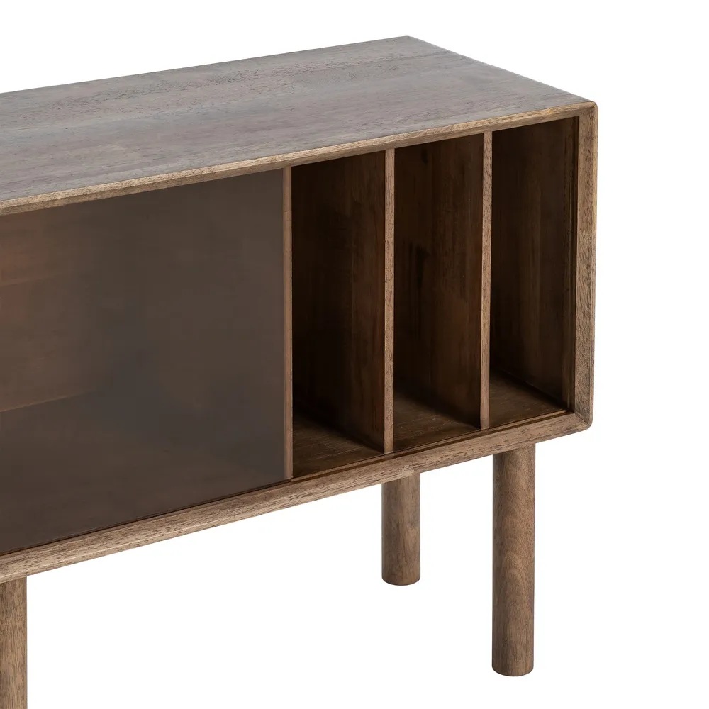 Puit on tugev ja vastupidav, mis tähendab, et riiul teenib teid aastaid, säilitades samal ajal oma esialgse ilu ja terviklikkuse. Puidu loomulik tekstuur toob ruumi hubasust ja kvaliteeti, mis on silmapilkset äratuntav.