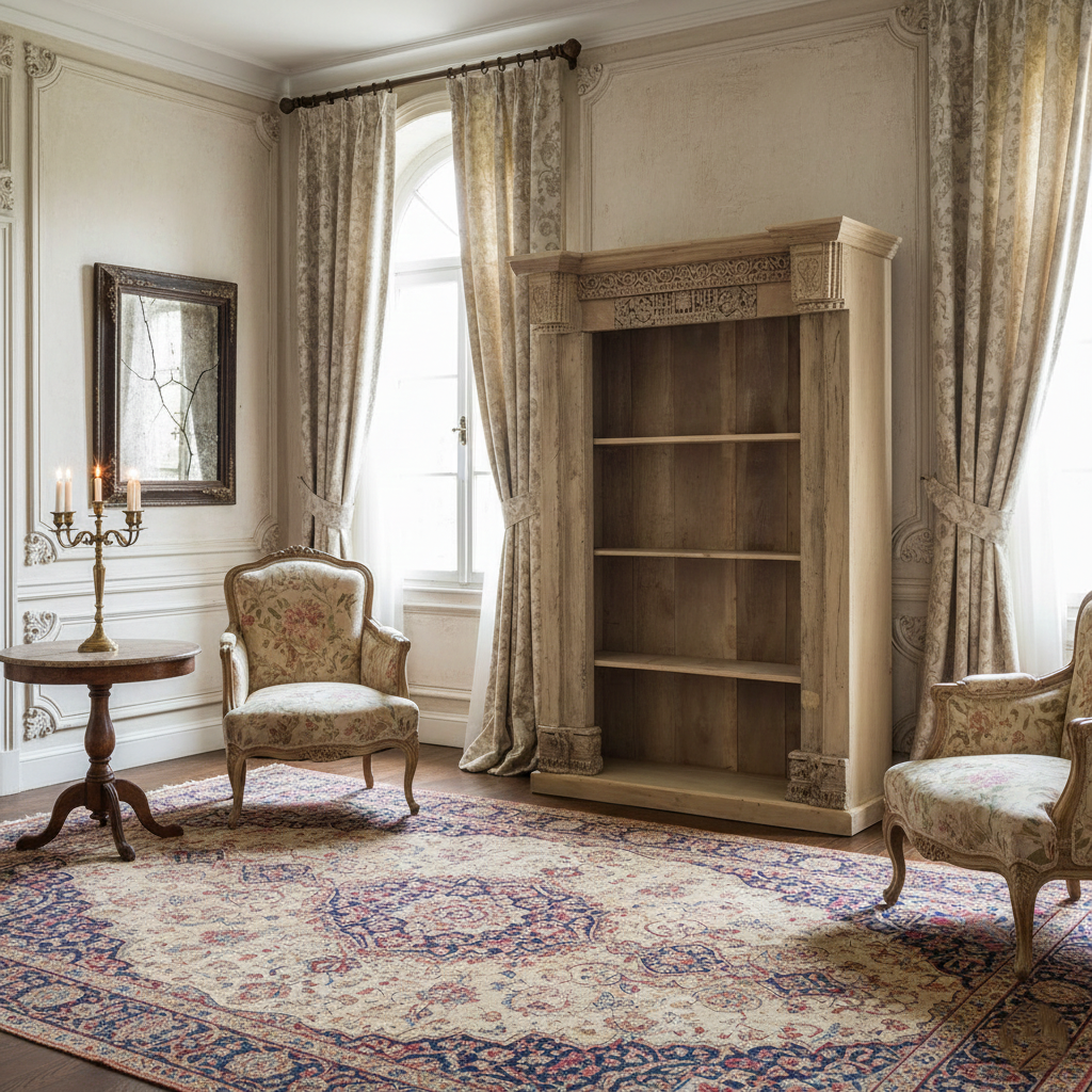 Eriliselt silmatorkavaks muudab riiuli sellel kasutatud antiikse puudutusega ornamentika, mis lisab interjöörile ainulaadsust.