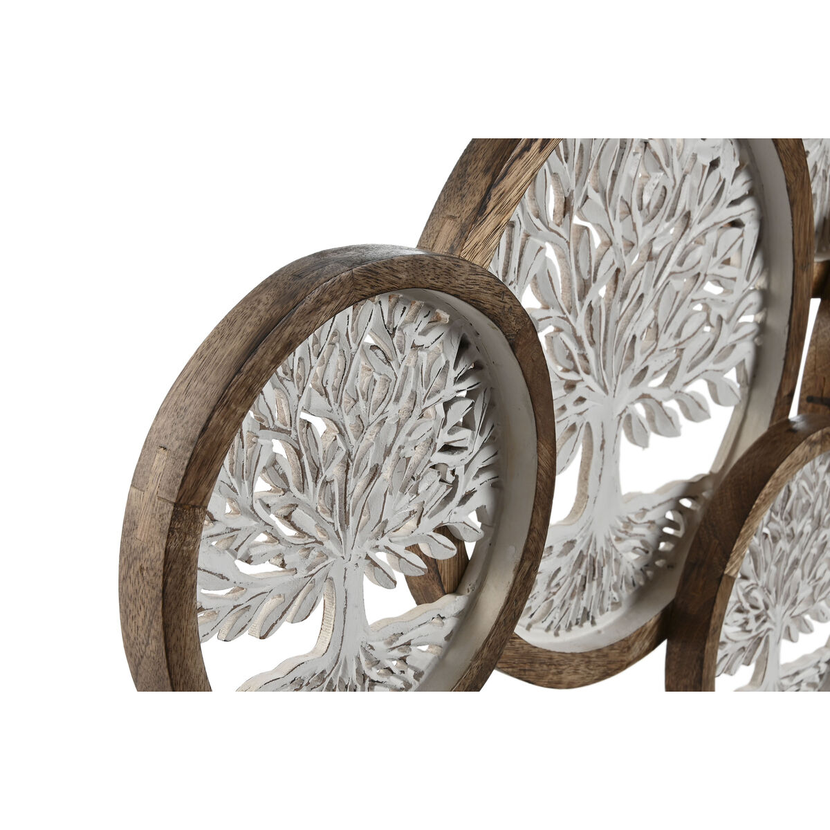 Seinakaunistus on valmistatud tugevast mangopuidust ja viimistletud pruuni ja valge kulutatud tooniga. Mangopuit tagab, et dekoratsioon on vastupidav, samal ajal lisades ruumile ajatut ilu. Seinadekoratsiooni võlu peitub erineva suurusega ringikujundite harmoonias. Erinevad suurused loovad stiilse ja kihilise terviku, mis sobib ideaalselt täiendama igat ruumi.
