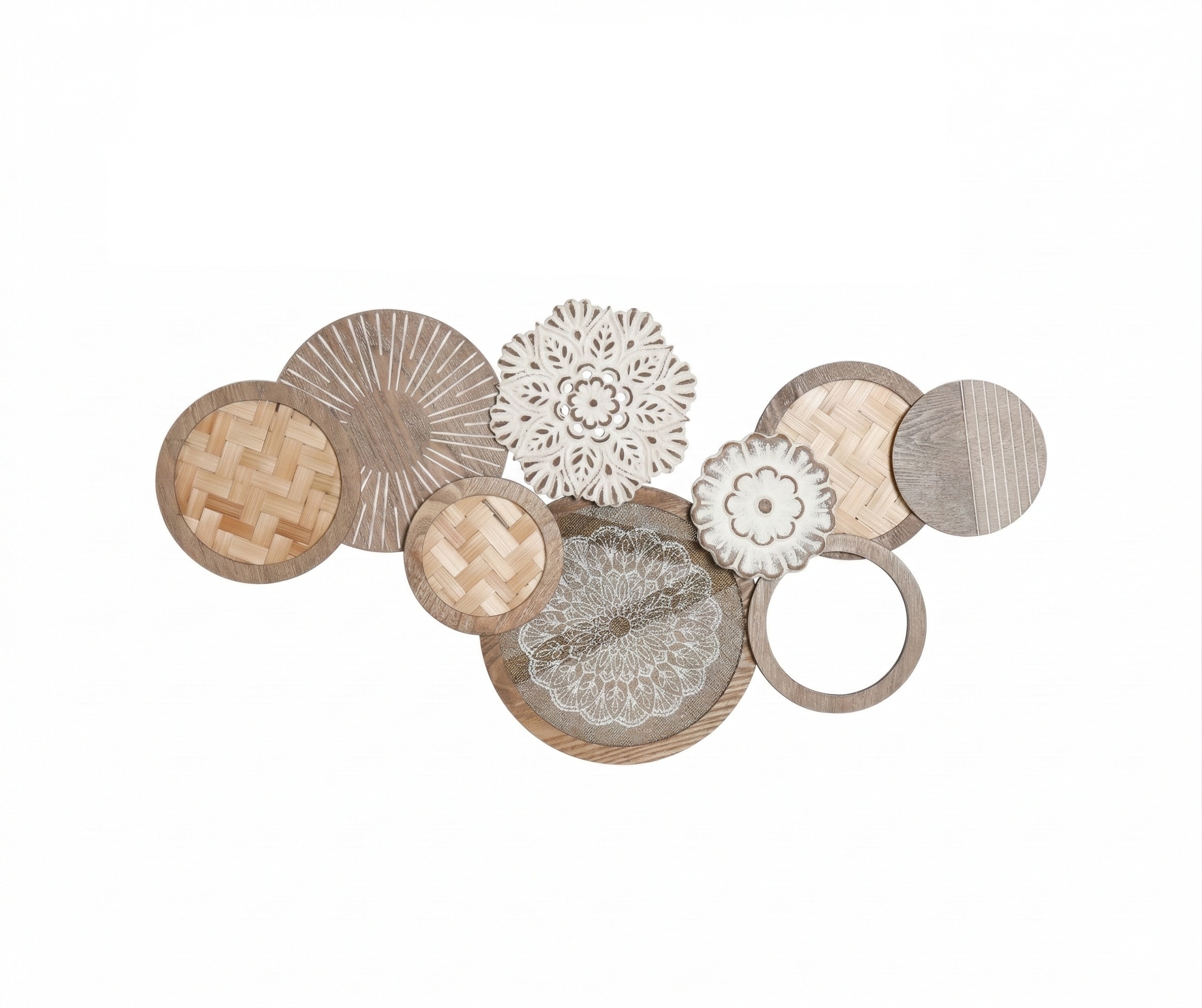 Seinakaunistus Boche pakub interjöörile stiilset puudutust ning loob ruumile unikaalse ja eksklusiivse ilme. Dekoratsioon on valmistatud mdf-ist ja viimistletud naturaalse ning kulutatud valge tooniga. Mdf tagab, et dekoratsioon on vastupidav, samal ajal lisades ruumile ajatut ilu. Seinadekoratsiooni võlu peitub erineva suurusega ringikujundite harmoonias. Erinevad suurused  loovad stiilse ja kihilise terviku, mis sobib ideaalselt täiendama igat ruumi.
