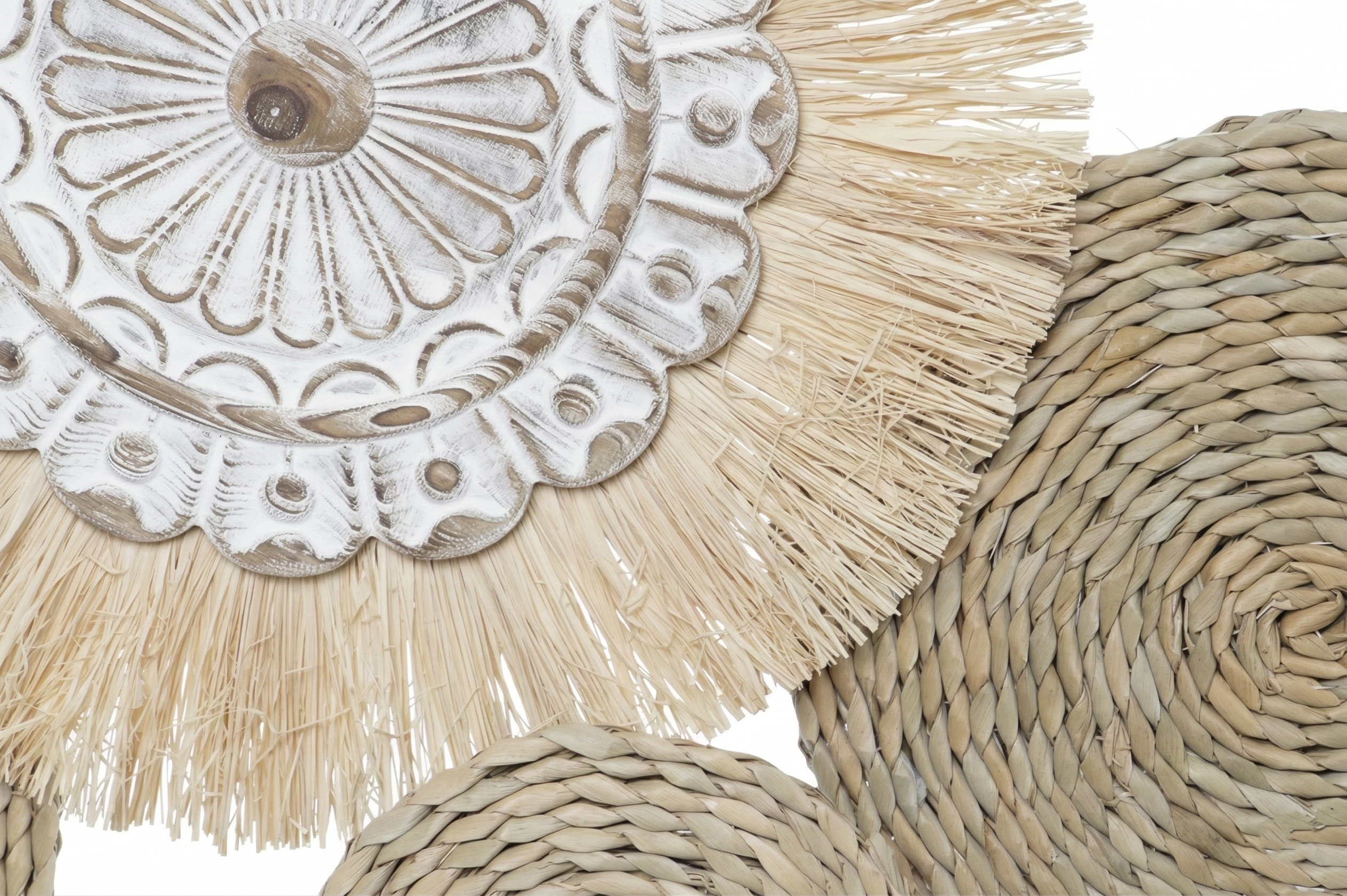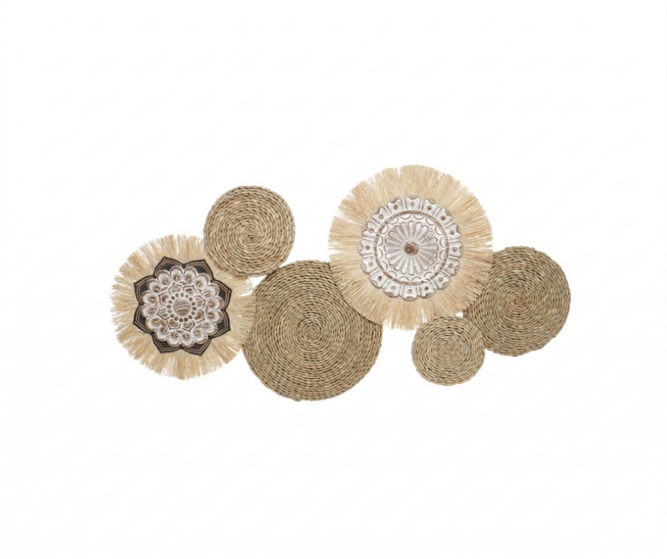 Seinakaunistus Fibra pakub interjöörile stiilset puudutust ning loob ruumile unikaalse ja eksklusiivse ilme. Dekoratsioon on valmistatud mdf-ist ning naturaalsest kiust ja viimistletud naturaalse ning kulutatud valge tooniga. Seinadekoratsiooni võlu peitub erineva suurusega ringikujundite harmoonias. Erinevad suurused  loovad stiilse ja kihilise terviku, mis sobib ideaalselt täiendama igat ruumi.