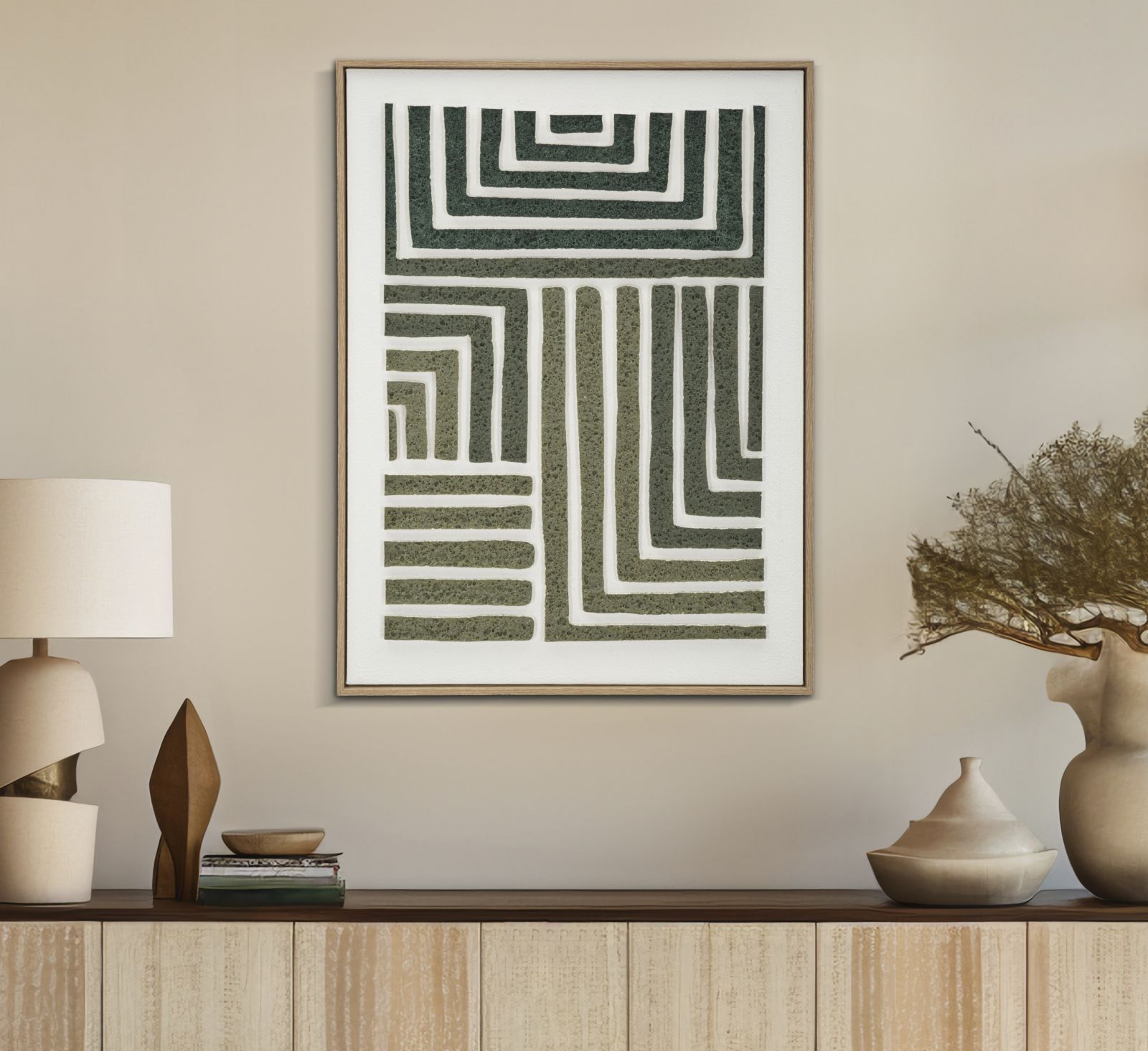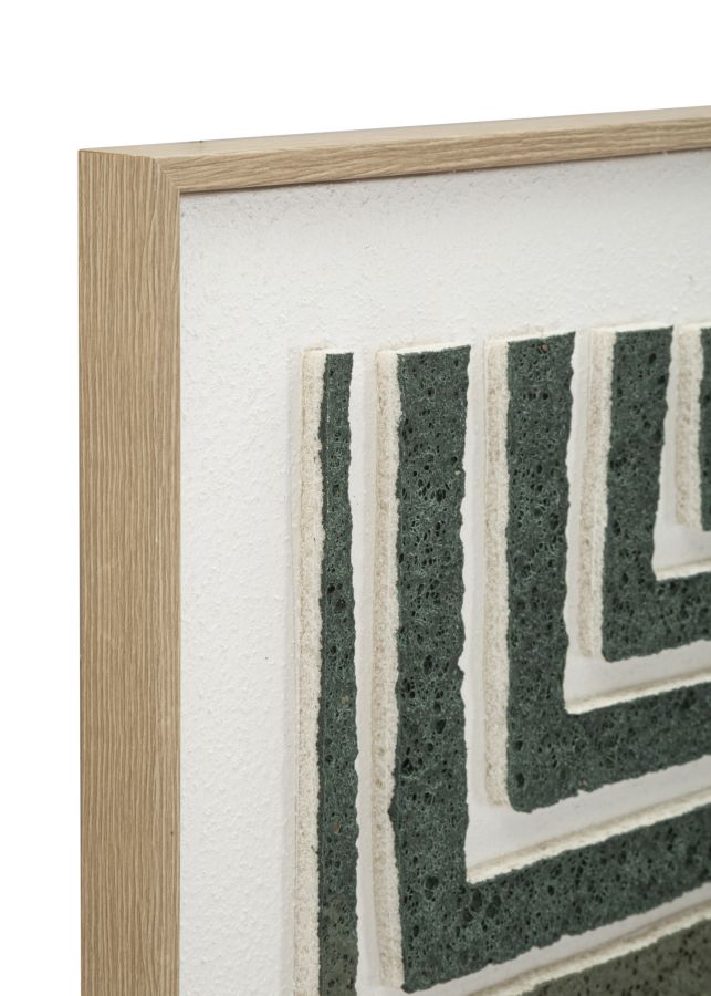 Seinapilt Deep Panel tõmbab tähelepanu oma stiilsete reljeefsete detailidega. See on suurepärane näide sellest, kuidas lihtsus ja iseloom võivad koos eksisteerida, luues visuaalselt köitva ja samas rahuliku atmosfääri. Pildi valge taust loob puhta ja avara tunde, samas kui rohelised detailid lisavad sellele elujõudu ja energiat. Reljeefsed detailid seinapildil on pilkupüüdvad, mis loovad visuaalset sügavust ja huvi, kutsudes vaatlejat lähemale uurima, kuidas valgus ja vari mängivad pildi pinnal.