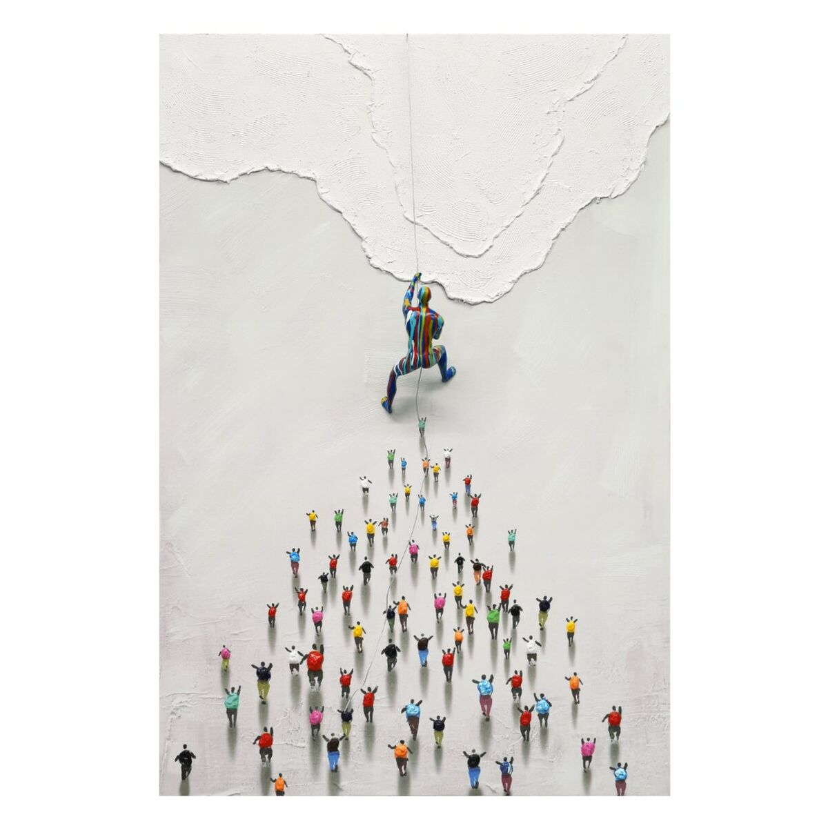 Suuremõõtmeline seinapilt People on tõeliselt silmapaistev ja stiilne aksessuaar, mis toob igasse ruumi omanäolisuse ja isikupära. Seinapilt ei ole lihtsalt dekoratiivne element, vaid ka kunstiline väljendus, mis kutsub esile emotsioone ja loob unikaalse atmosfääri. Seinapildil on väljaulatuv ja roniv mehe ja talle järgnevate inimeste kujud, mis lisab interjöörile visuaalset atraktiivsust, muutes pildi koheselt iga ruumi keskpunktiks.