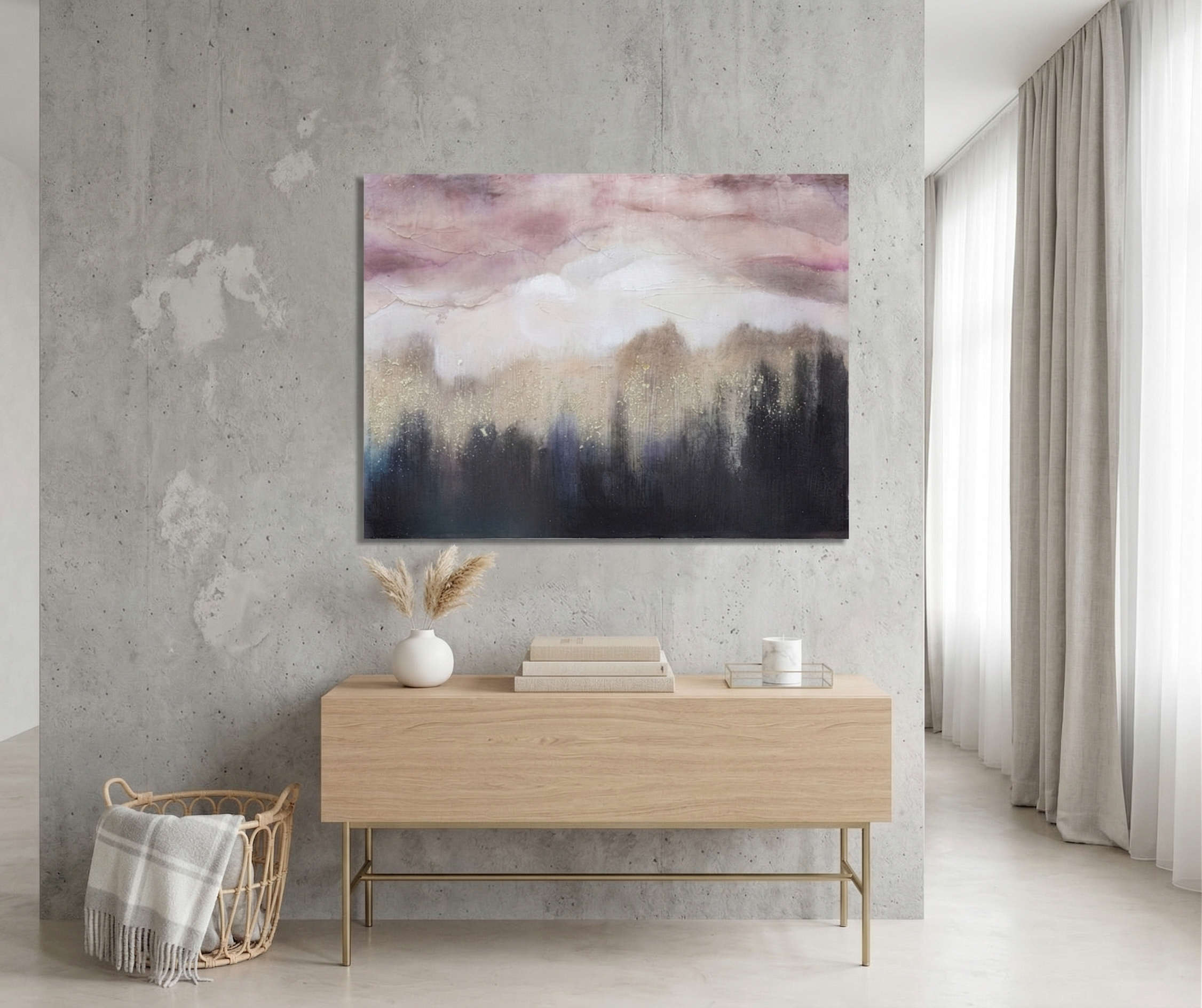 Seinapilt Pink Mountain on ainulaadne kunstiteos, mis toob igasse ruumi stiilsust ja omanäolisuse. Pildi keskmes on mägede kujutised. Pilt ei ole lihtsalt dekoratsioon, see on silmapaistev element, mis muutub iga ruumi keskpunktiks.