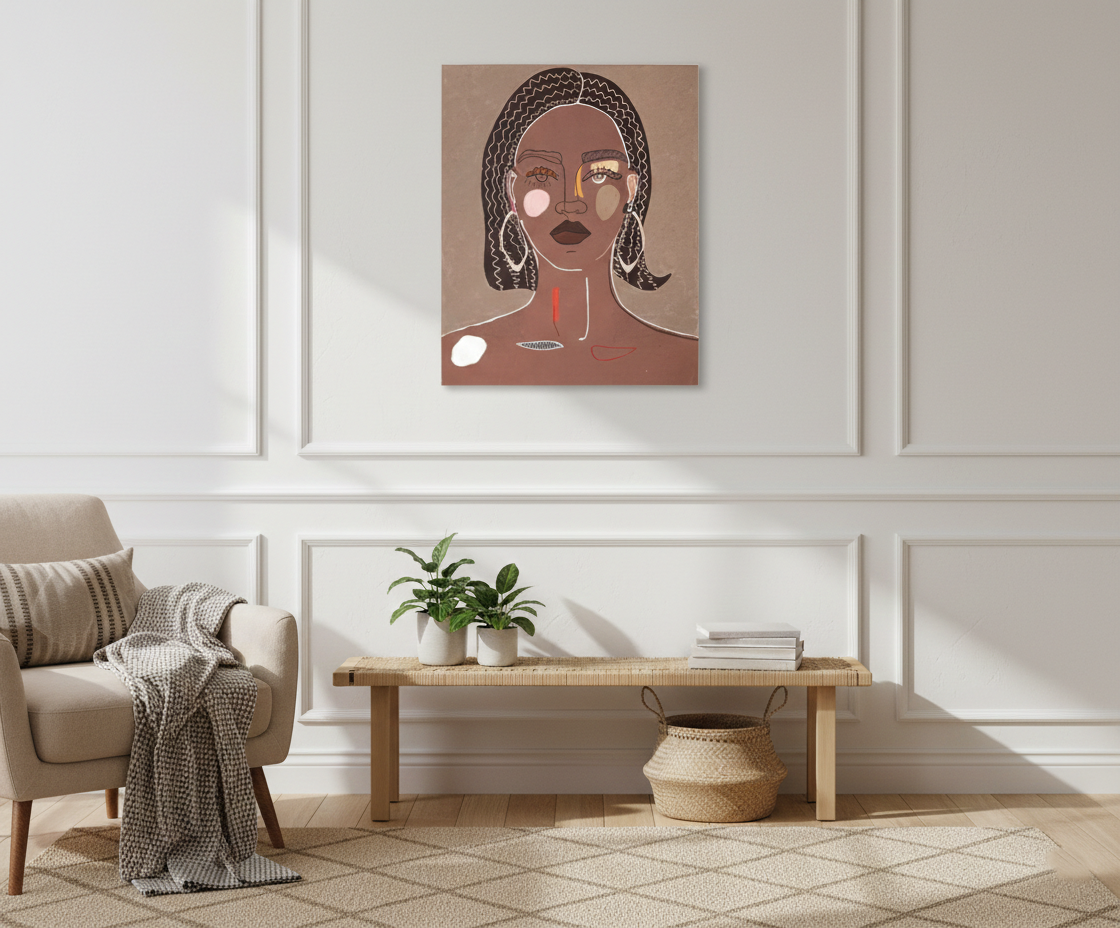 Seinapilt Tribal Face on ainulaadne kunstiteos, mis toob igasse ruumi stiilsust ja omanäolisuse. Pildi keskmes on vabakäe joonistusega naise nägu, mis loob õhkkonna kutsudes esile tahtmatut imetlust. Selline kunstiteos ei ole lihtsalt dekoratsioon, see on silmapaistev element, mis muutub iga ruumi keskpunktiks.