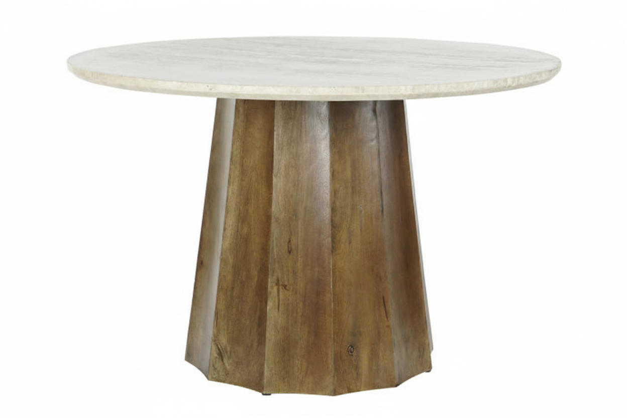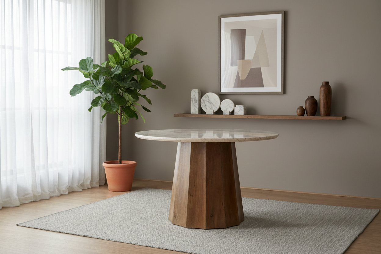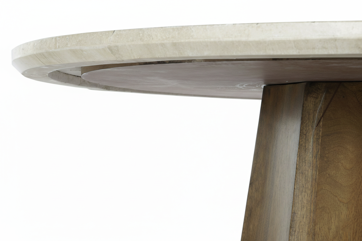 Söögilaua ainulaadsus seisneb selle omapärases mangopuidust aluses, mida täiendab marmorist lauaplaat. Need elemendid muudavad laua silmapaistvaks ruumi keskpunktiks.