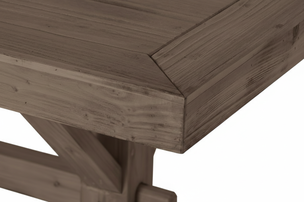 Laud on valmistatud kvaliteetsest puidust, mis on tugev ja vastupidav. Puidu tekstuur lisab söögilauale unikaalse iseloomu, mida täiendab veelgi selle pruun viimistlus.