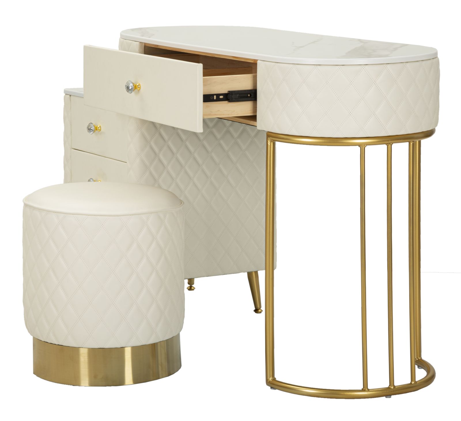 Tualettlaua komplekt Sharon Crema koosneb tualettlauast ja tumbast.