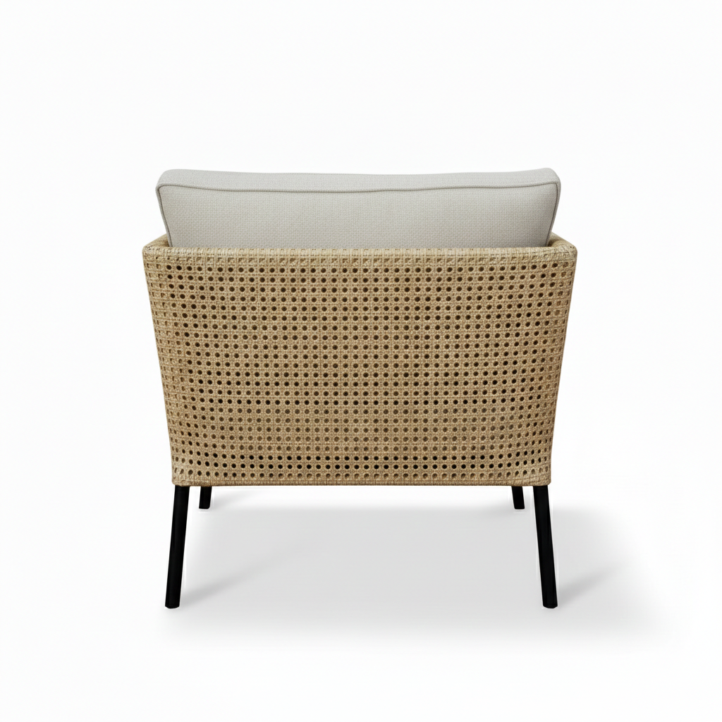 Tugitool on viimistletud sünteetilise rotangiga, mis loob visuaalset atraktiivse välimuse. Tugitooli konstruktsioon on valmistatud tugevast ja vastupidavast alumiiniumist. Alumiinium tagab, et mööbel peab vastu erinevatele ilmastikutingimustele, ilma kaotamata oma struktuurset terviklikkust.
