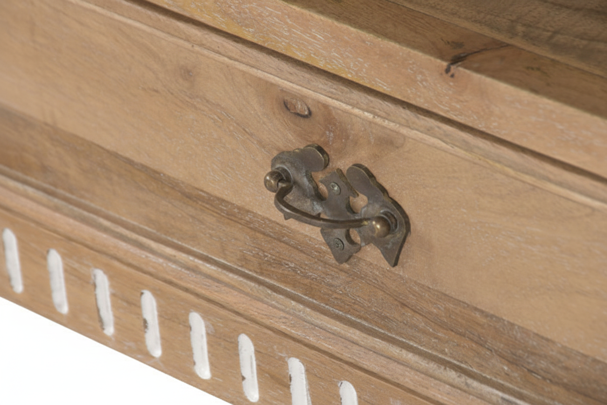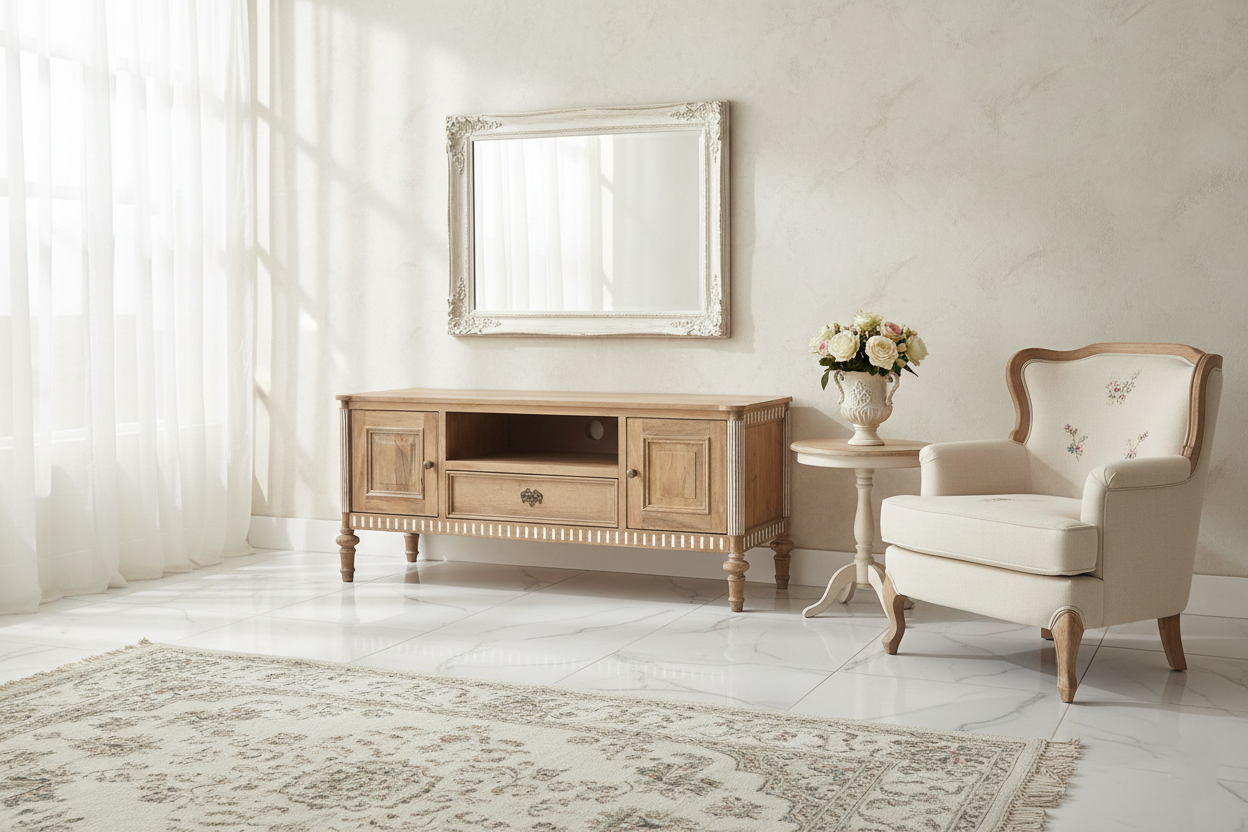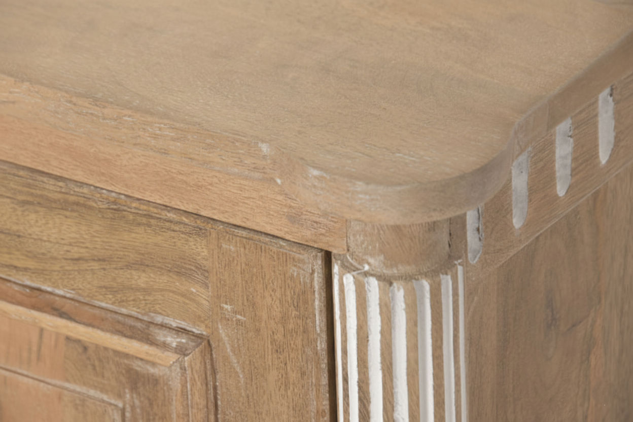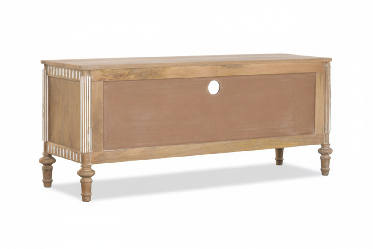 Tv-alus Castillo ühendab endas nii modernsust ja romantilist disaini, sobitudes sujuvalt igasse interjööri. Telerialus on valmistatud mangopuidust, mis on tuntud oma vastupidavuse ja pikaealisuse poolest. See tagab, et tv-alus pole mitte ainult visuaalselt kaunis, vaid ka praktiline investeering teie koju. Mangopuit on materjal, mis aja möödudes muutub kaunimaks, muutes kummuti aastate pärast veelgi iseloomulikumaks ja köitvamaks.