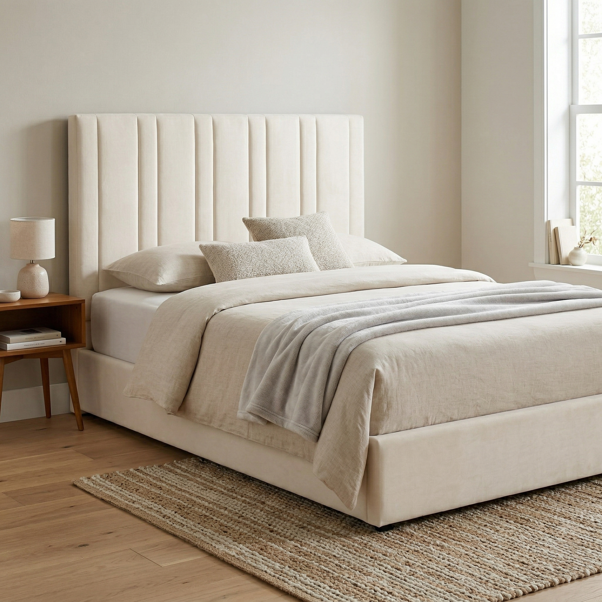 Voodipeatsi disain on minimalistlik ja samas elegantne, sobitudes erineva stiiliga magamistubadesse – olgu need traditsioonilised või modernsed. Beeži tooni polüesterkangas lisab soojuse ja mugavuse tunnet ning rikastab ruumi visuaalselt.